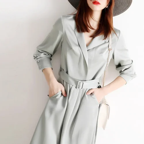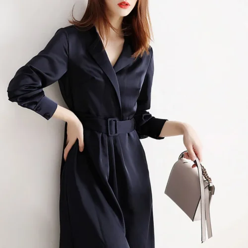 Product Name: New Arrival Stylish Long Sleeve Solid Color v Neck Elegant Work Dress Ladies Office Casual Dresses Spring Autumn Ladies Wear