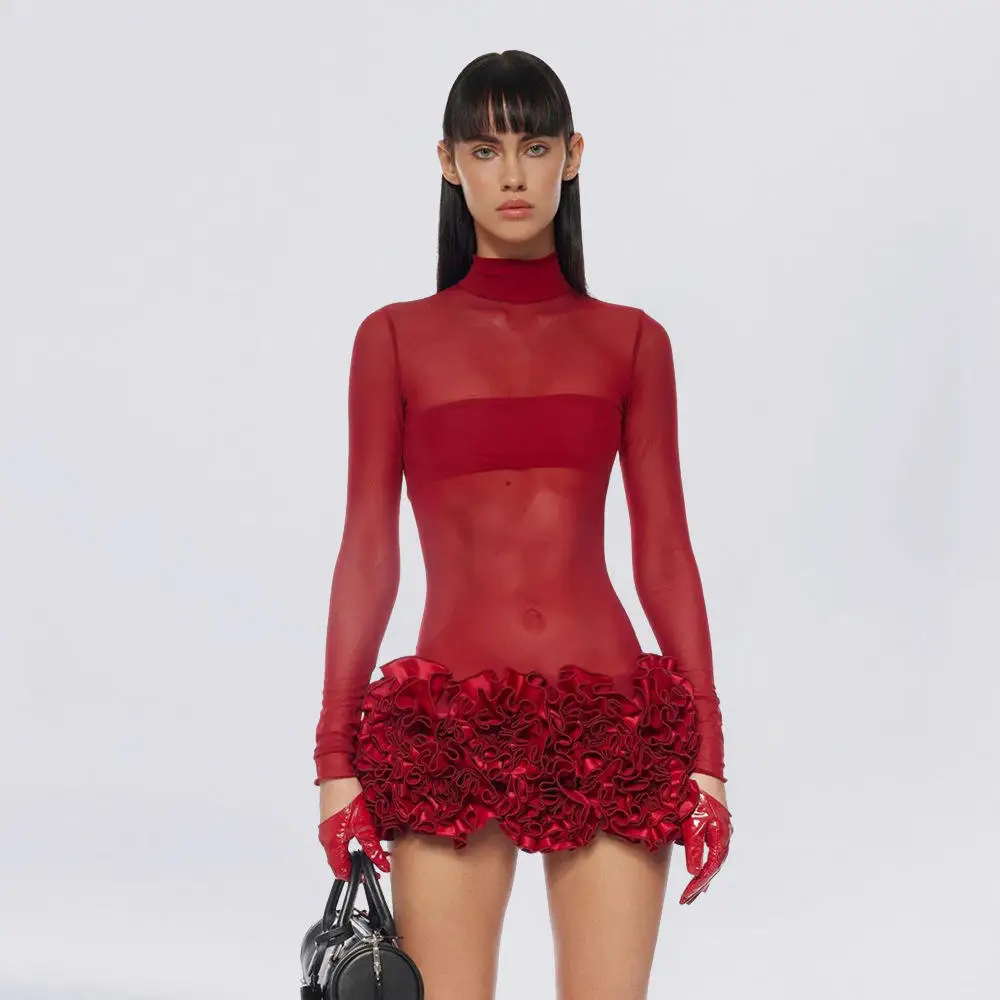 Product Name: New Arrival Summer Florals Rose Mini Dress for Women Sexy Party Dress Natural Waistline Feather Decoration for Valentine’s Day