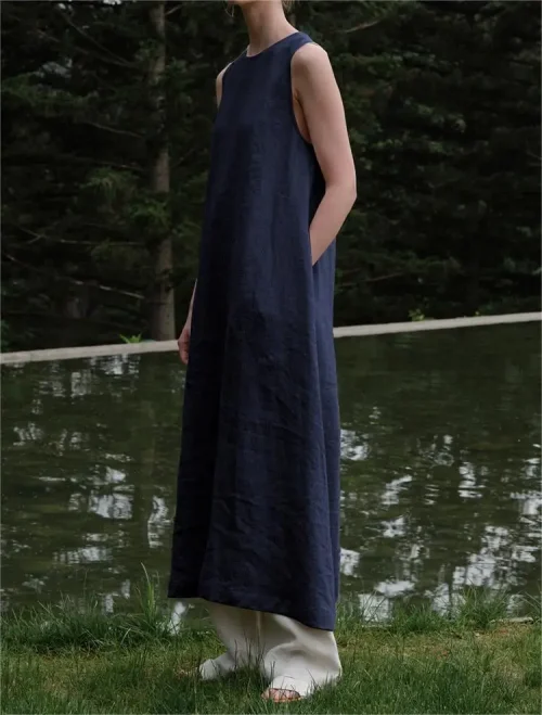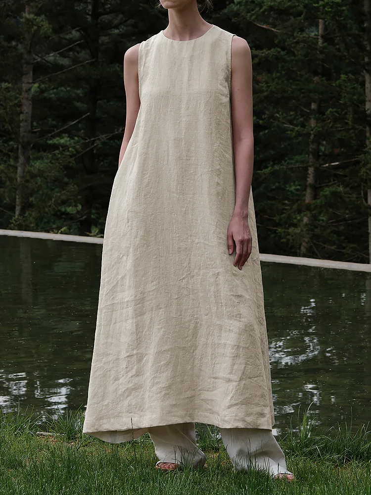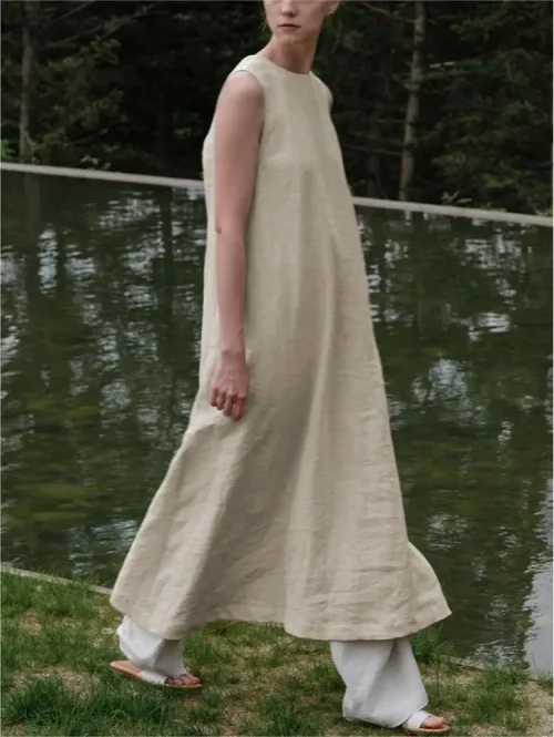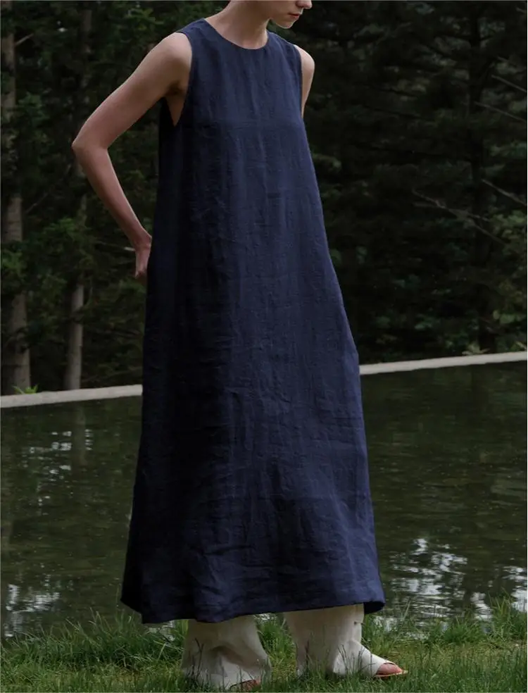 Product Name: New Arrival Summer Plus Size Women Dress Comfortable Linen Ladies Sleeveless Loose Maxi Dress Long Swing Casual Dresses