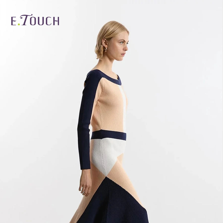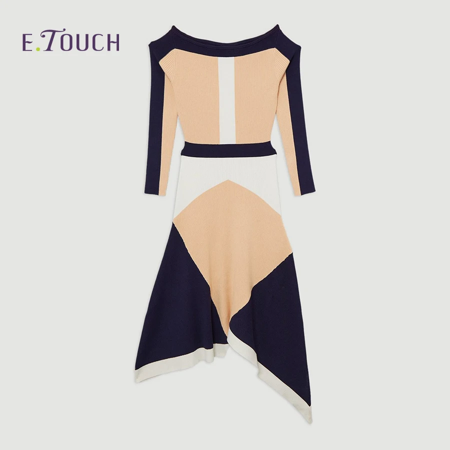 Product Name: New Arrival Women’s Viscose Blend Asymmetric Color-Block Dress – Spring/Summer Style