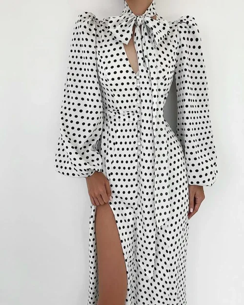 Product Name: New Arrivals Women Casual Dresses Dot Printed Dress Puffy Long Sleeve Elegant Dress