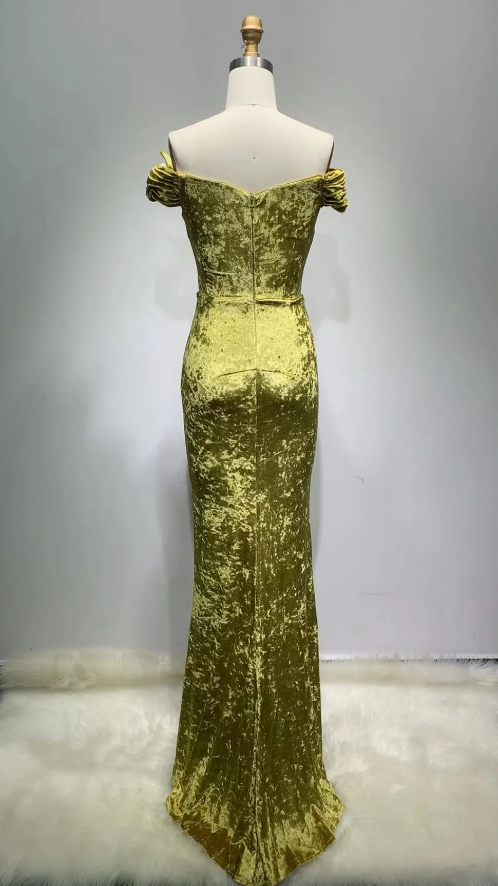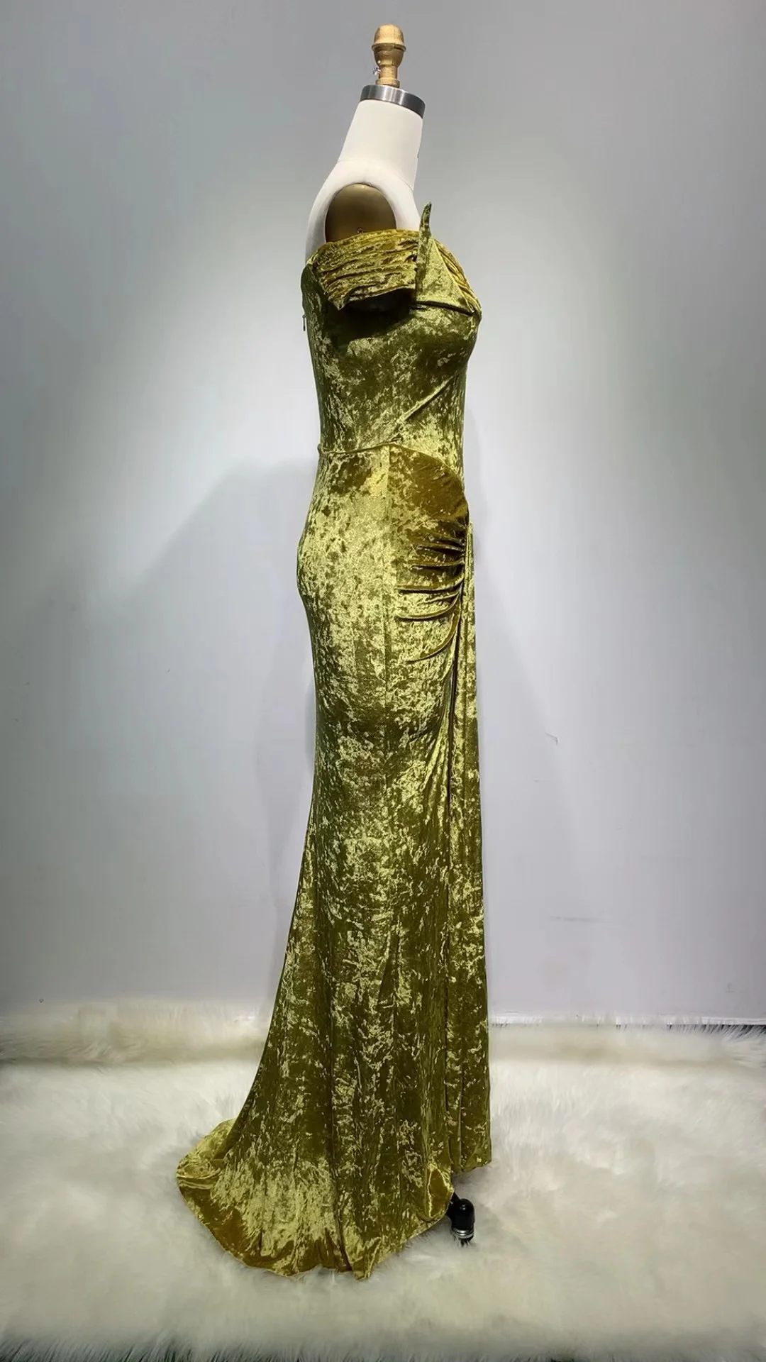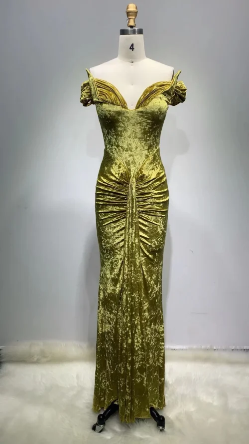 Product Name: New Arrived Gold Clothing for Women Luxury Party Gown Velvet Sexy V Neck Sleeveless Long Evening Dinner Dress Elegant
