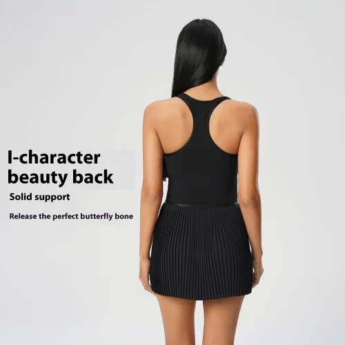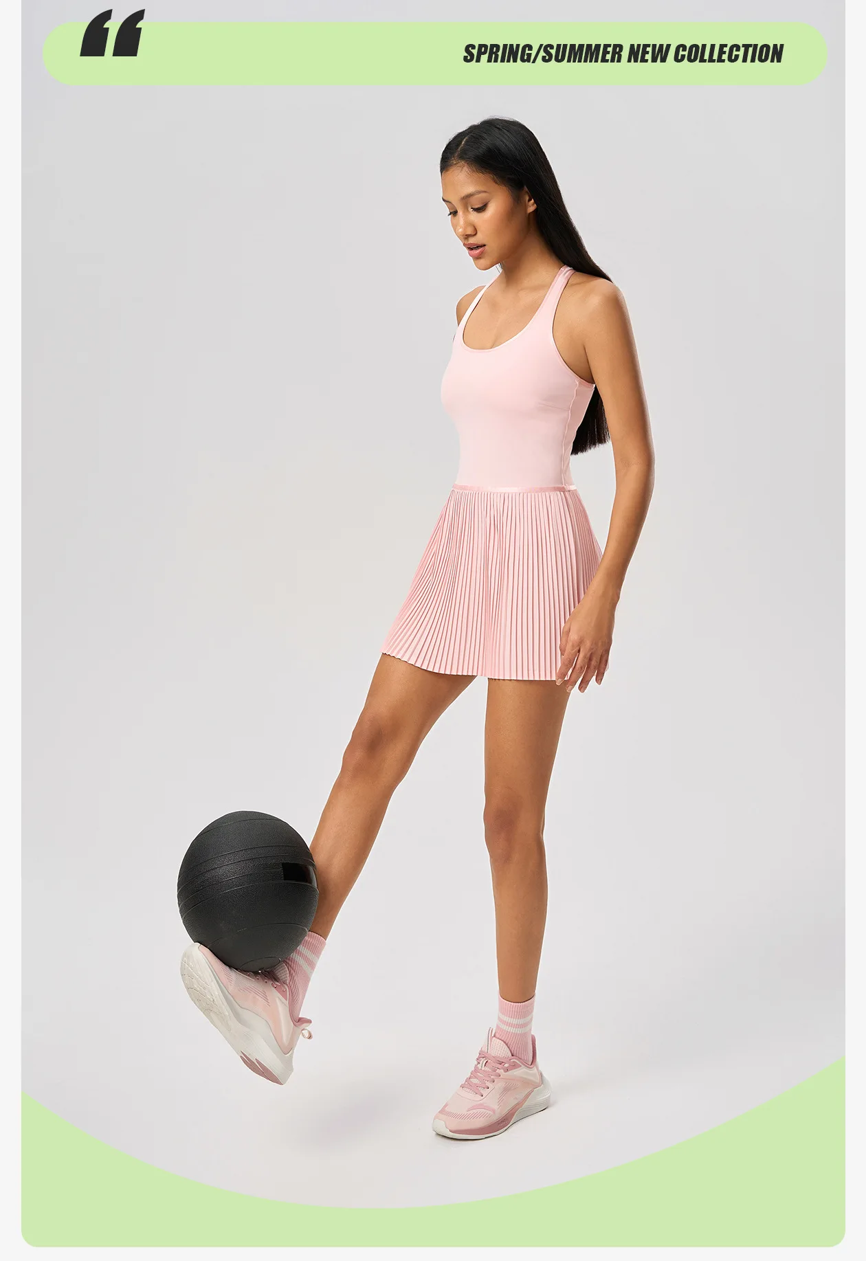 New Back Sports Dress Women with Breast Pad Yoga Sundress Cool Feeling Breathable Tennis Pleated Skirt Tennis Apparel