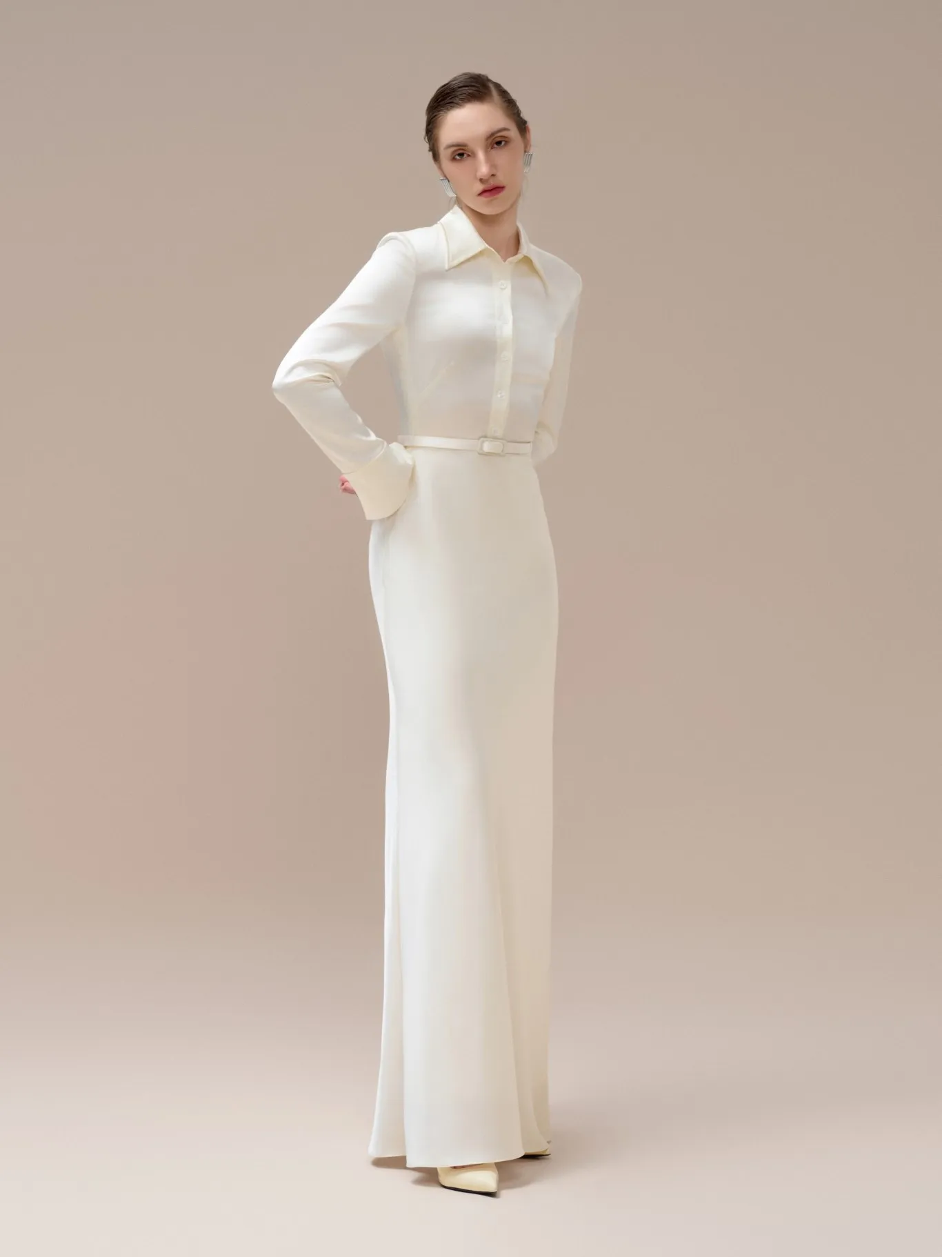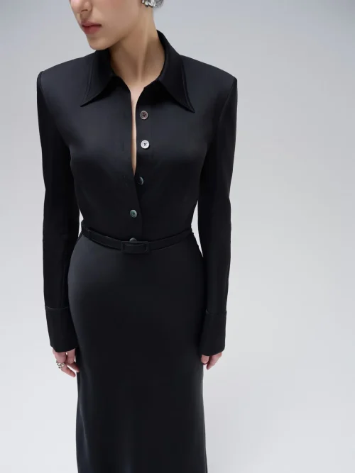 Product Name: New Design Black & White Women Casual Dresses With Belt AUDREY DAY DRESS Mison Satin Fabric Long Dress Elegant Women’s Clothing