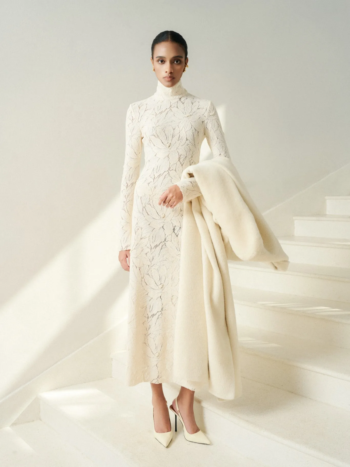 Product Name: New Design High Neck Long Women’s Dresses STELLA EMB LACE MIDI DRESS Organic Cotton Flower Lace Clothes Women WHITE ANT Vietnam