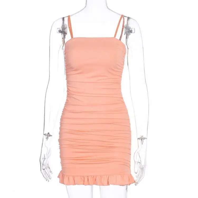 New Design Sexy Bodycon Sundress Party Wear Clothes Women Pleated Ruffled Dress Casual Summer Sexy Tight Dress 819-0420