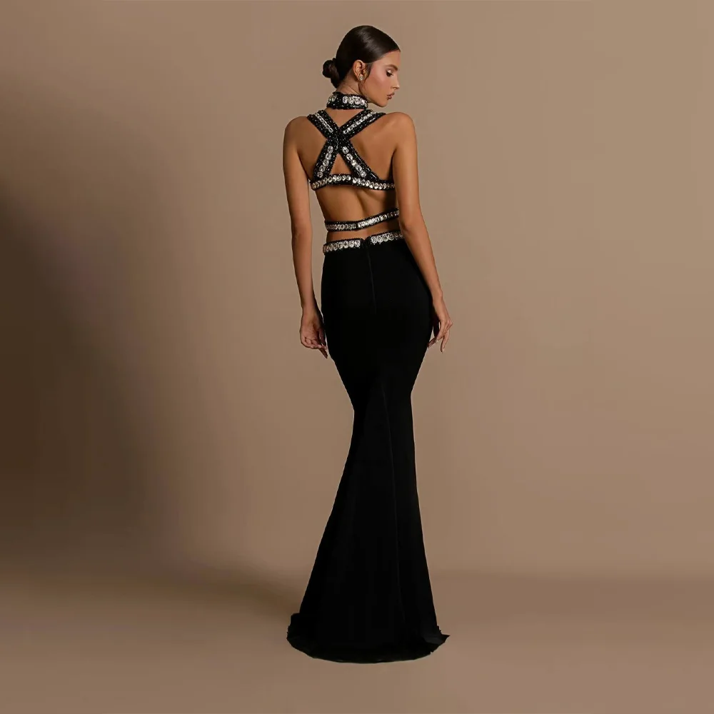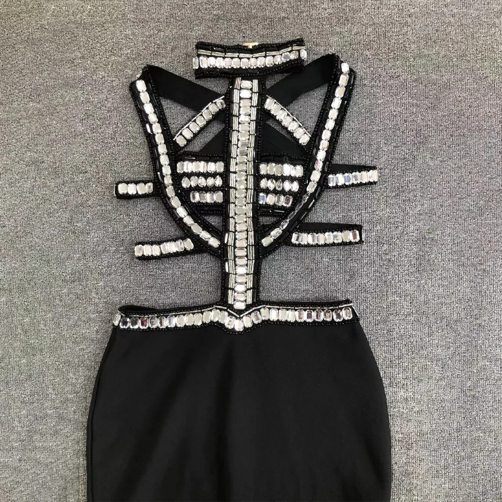 Product Name: New Design Sexy Cutout Backless Slim Black Bandage Dress Nightclub Party Dress Black Sexy Cutout Rhinestone Women Maxi Dresses