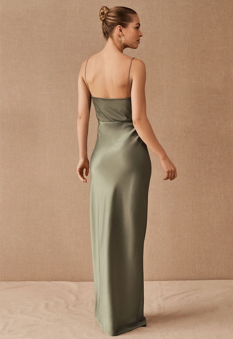 Product Name: New Design Silk Fabric Mermaid Spaghetti Strap Backless Wedding Party Long Dress Bridesmaid Evening Dress Casual