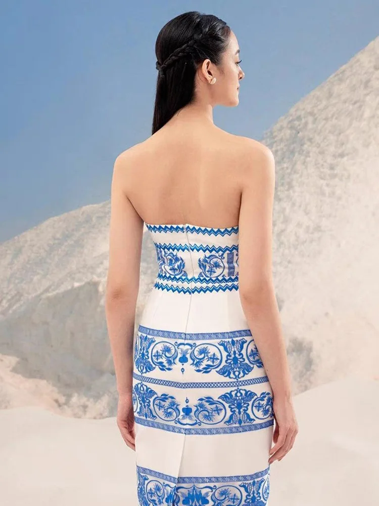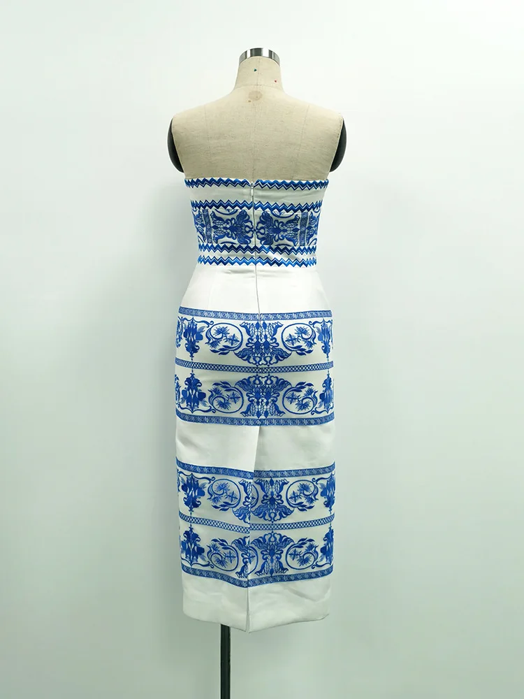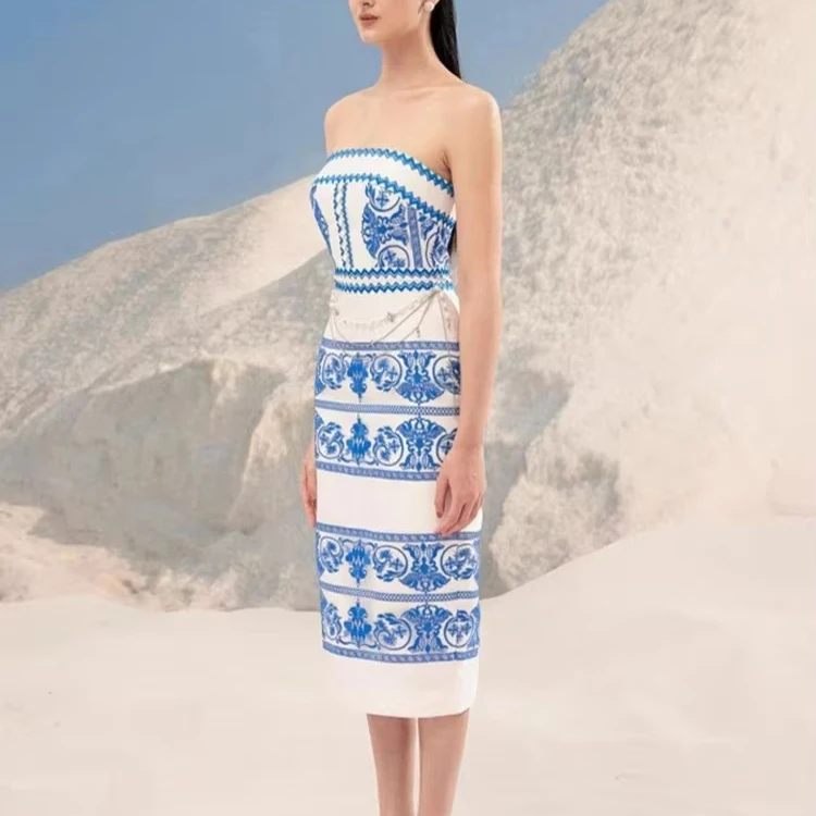 Product Name: New Design Summer Print Letters Slim Blue and White Female Long Skirts for Women
