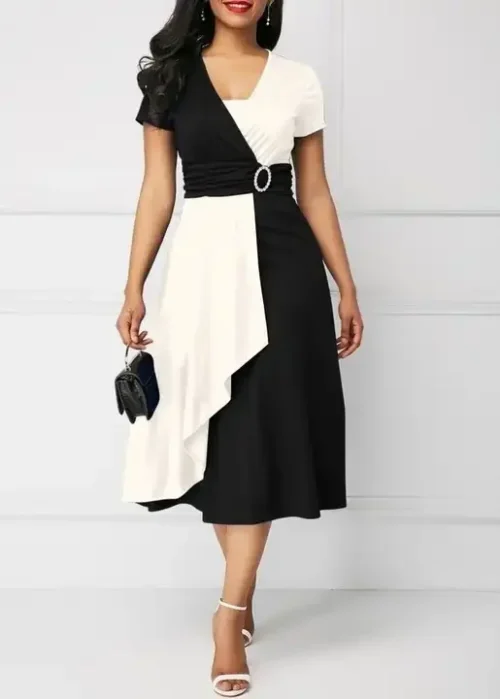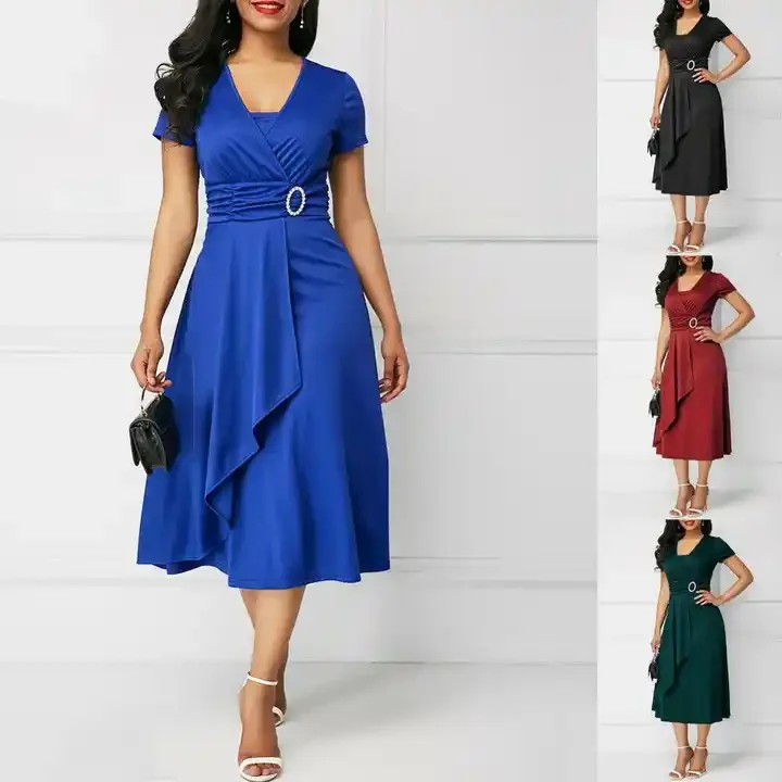Product Name: New Design Women Dress Casual Skirt Dress Formal Elegant Long Sleeve V Neck Floral Midi Dresses