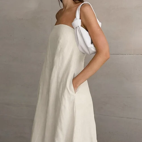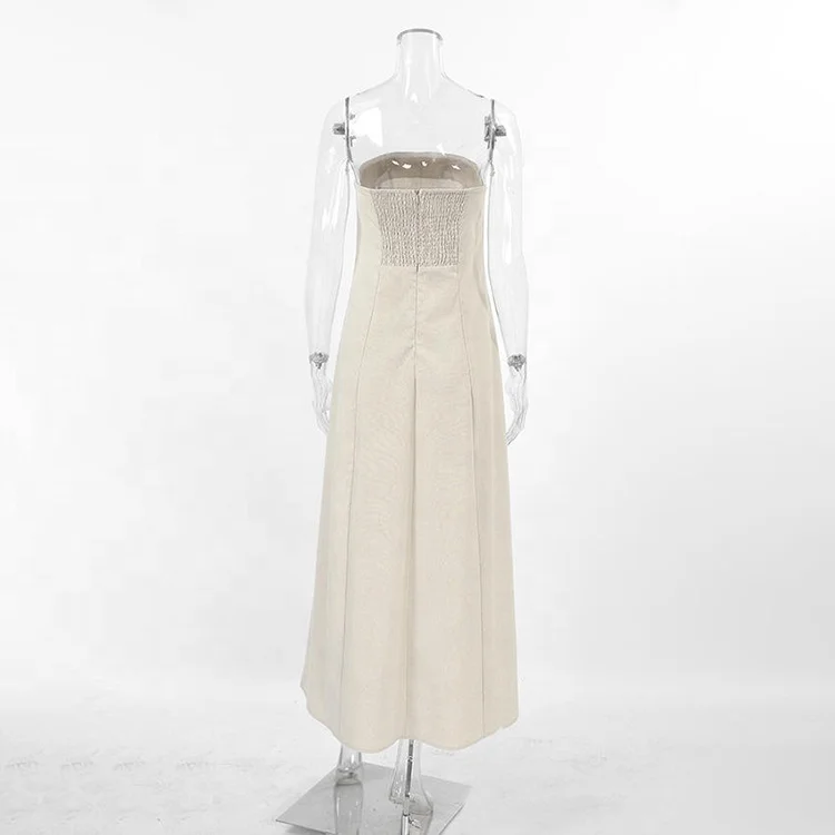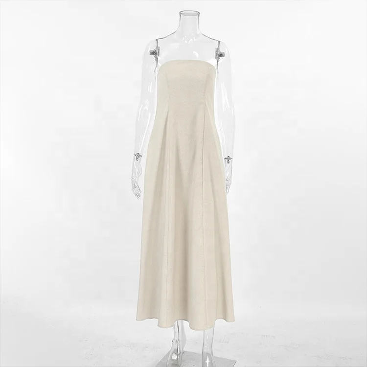 Product Name: New Design Women Flax Clothing 100% Cotton Linen Simple Elegant Sleeveless Maxi Dresses Casual Strapless Long Dress