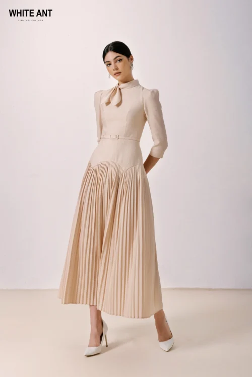 Product Name: New Design Women’S Dresses With Belt Reggie Sunray Pleat Dress Eco-Friendly Fabric Summer Clothes Whiteant Vietnam r