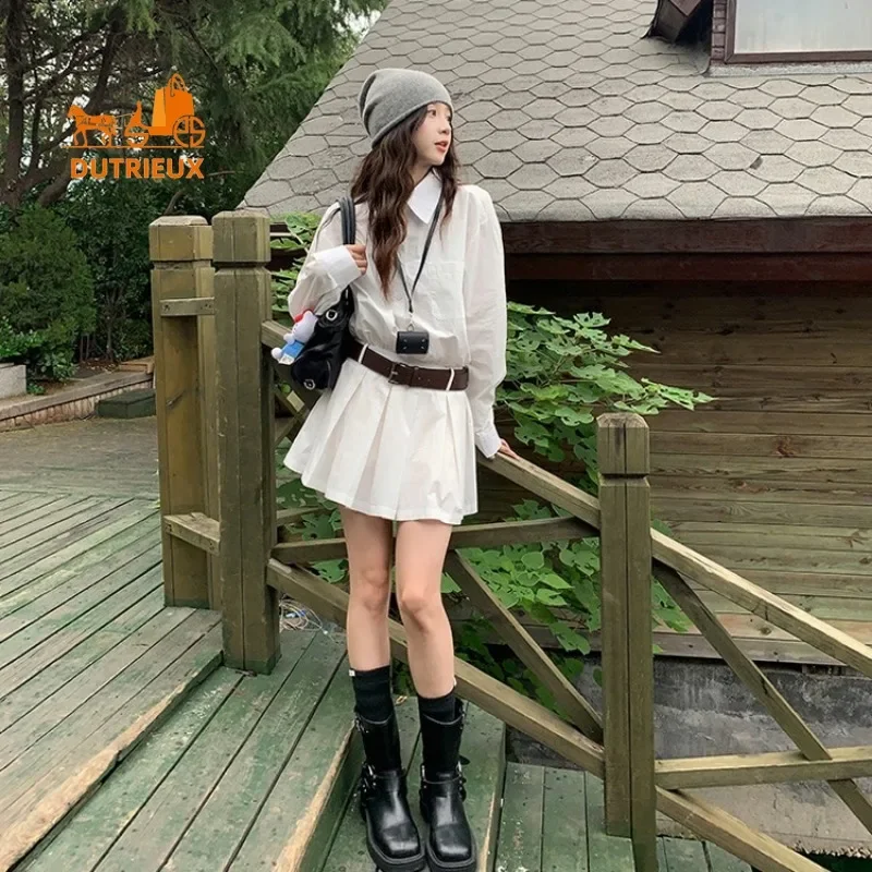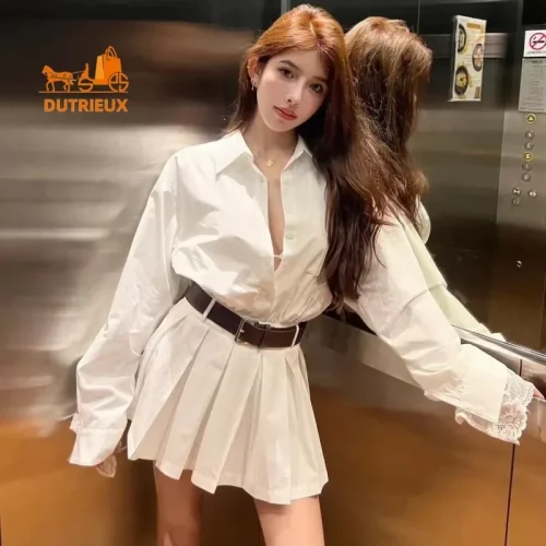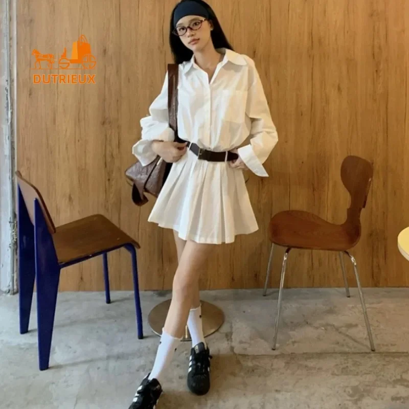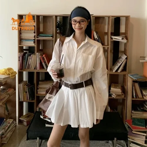 Product Name: New Elegant Fashion Summer Casual Belt Shirt Style White Dress Woman, Daily Travel Vacation Seaside Beach Dress for Women 333