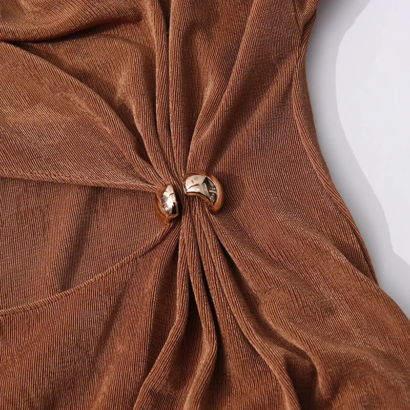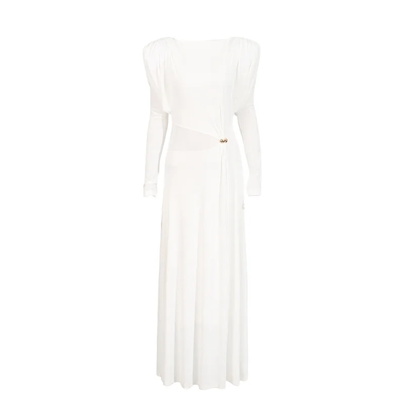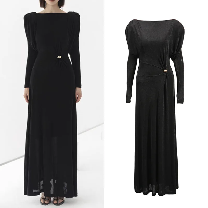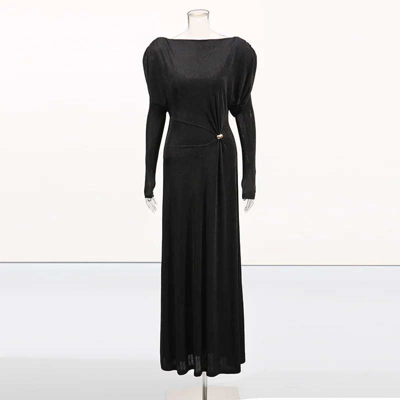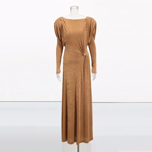 New Elegant High-end Round Neck Twisted Slim Women Casual Dresses Long Dress