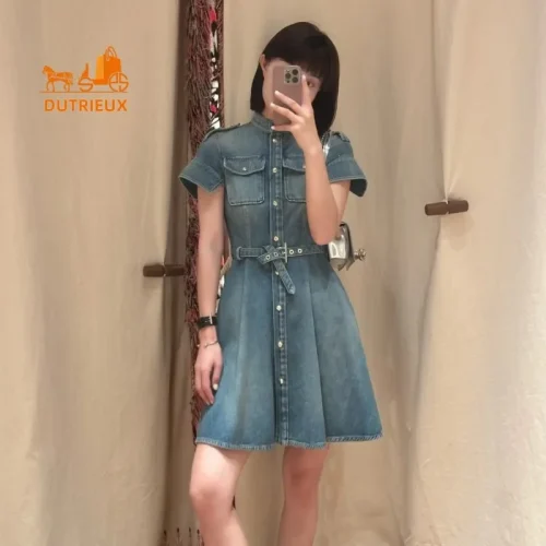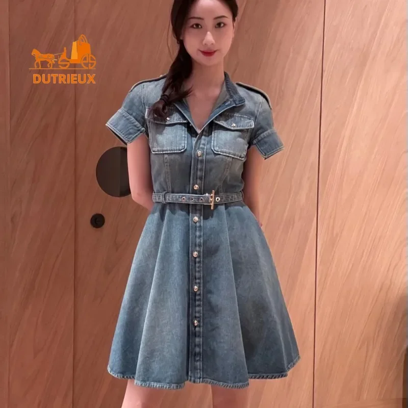 Product Name: New Elegant Retro Fashion Summer Casual Denim Cotton Dress Women, Daily Travel Vacation Seaside Beach Shirt Women Dress 333