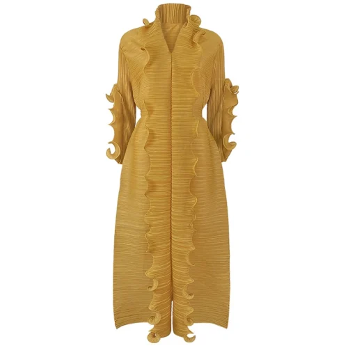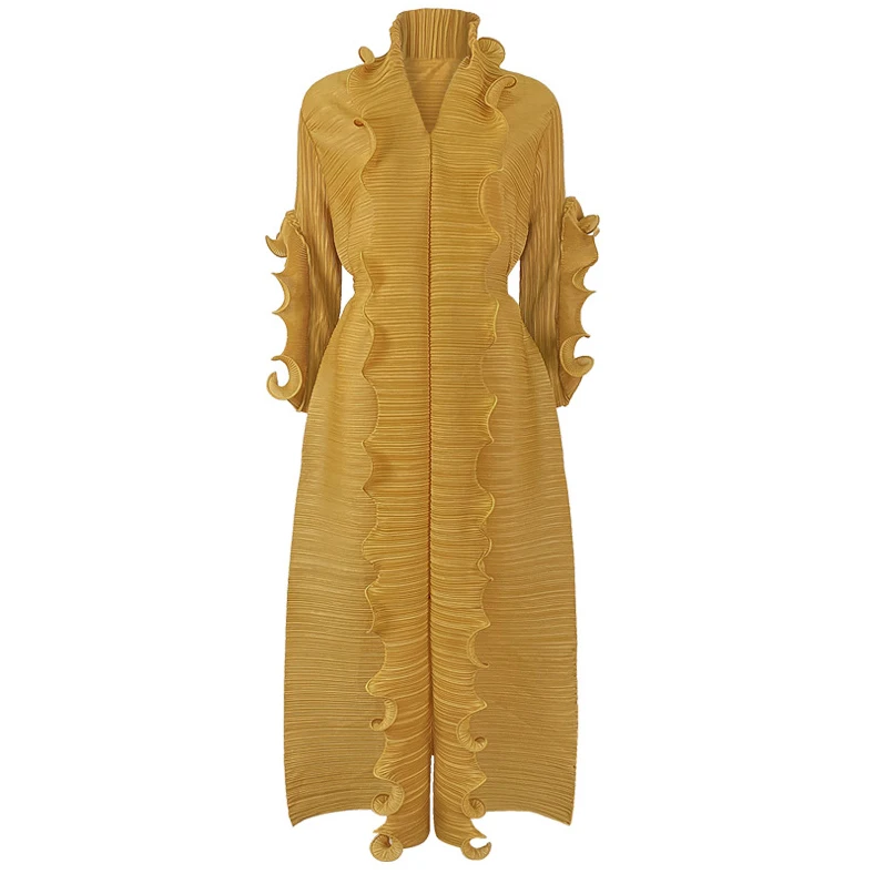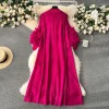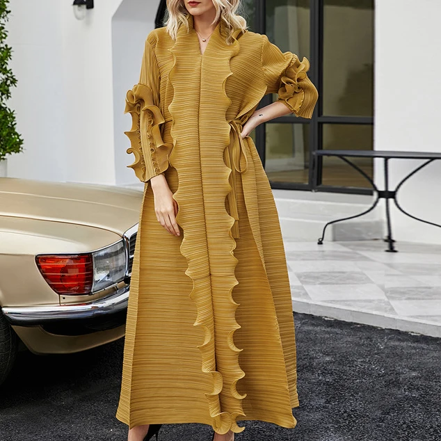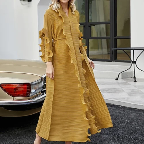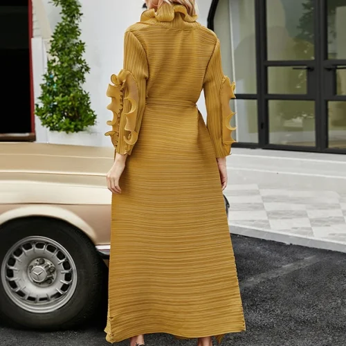 Product Name: New Fall Women’s Fashion Dress Long Sleeve Elegant Dress Casual V-neck Pleated Long Dress With Belt