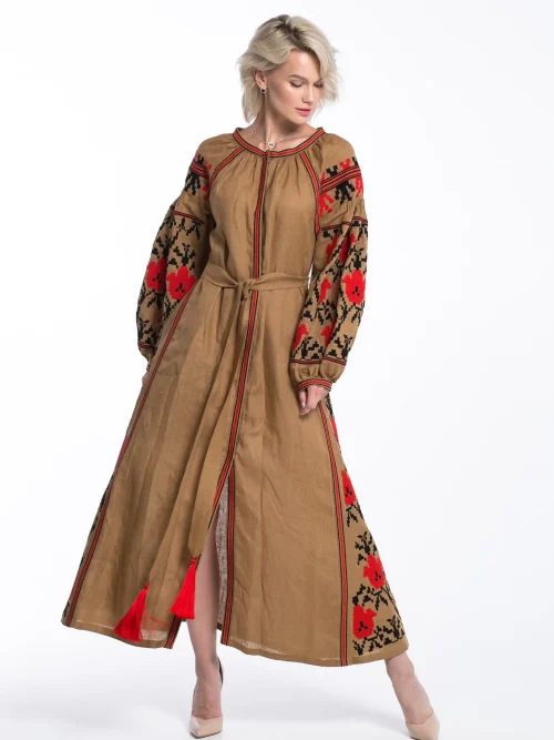 Product Name: New Fantastic Look Bohemian Style Vintage Embroidery Heavy Hand Work Flare and Puff Long Sleeve Fit and Flare Ukrainian Dress