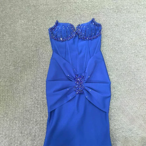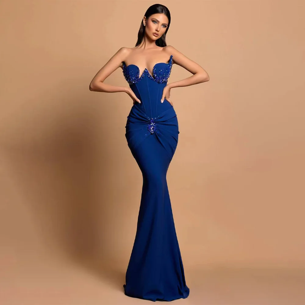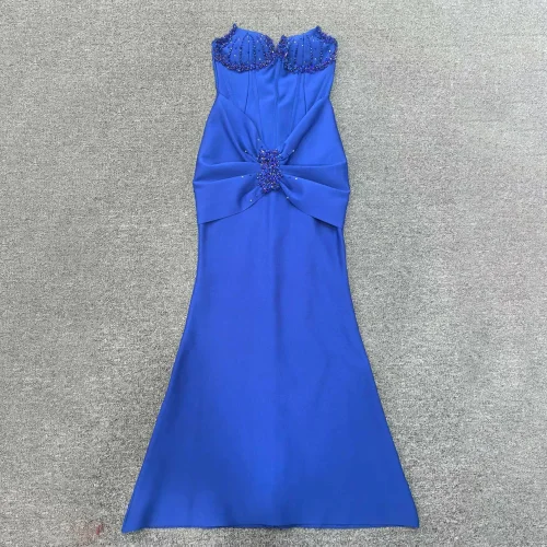 New Fashion Design Backless One-Shoulder Pleated Fishbone Slim Long Fishtail Dress Elegant Women Sexy Evening Dress