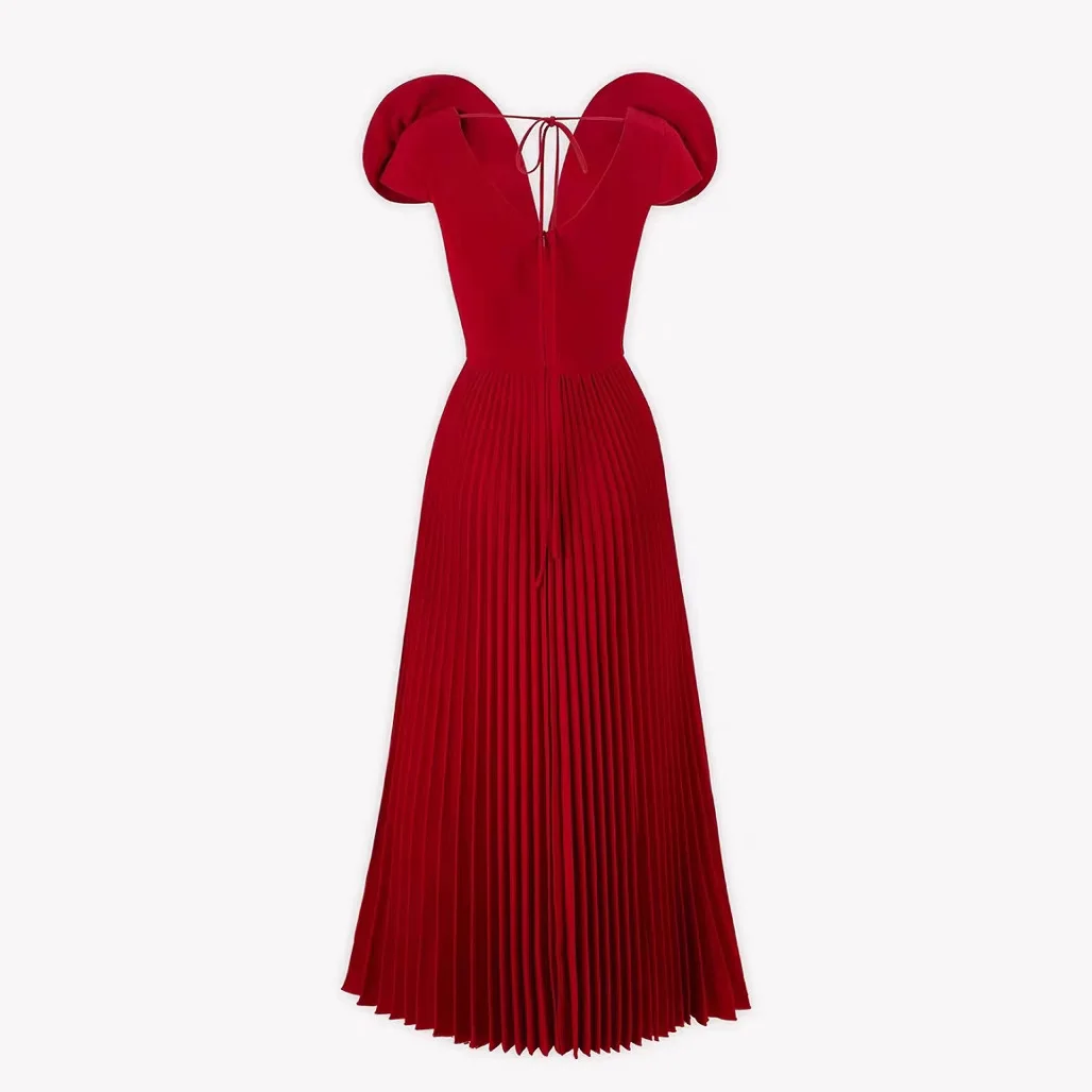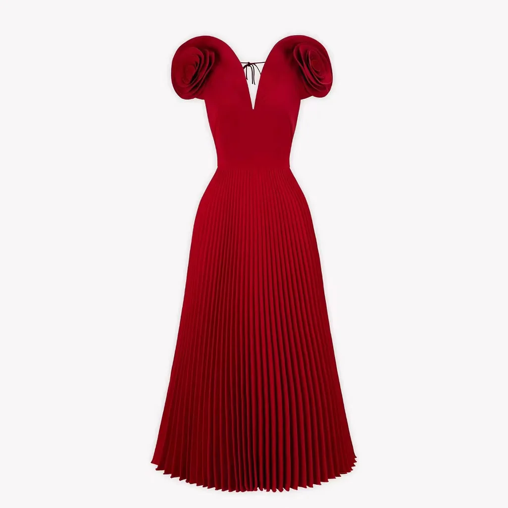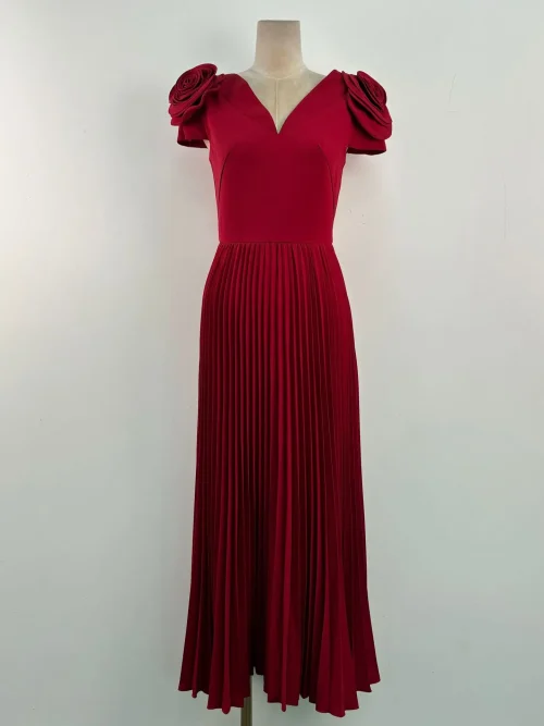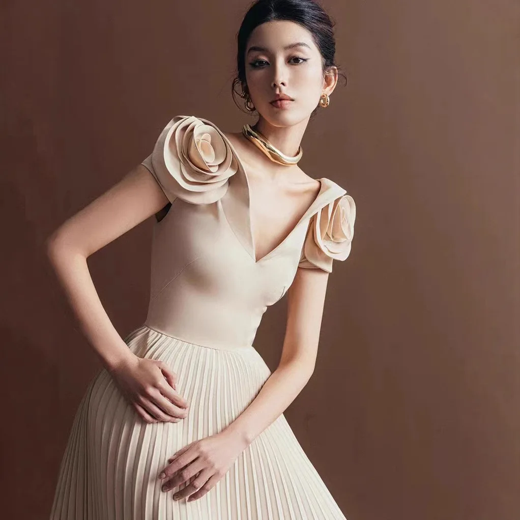 Product Name: New Fashion High Waist Flower Dress Long Dress Sexy V-neck Pleated Long Female Dress