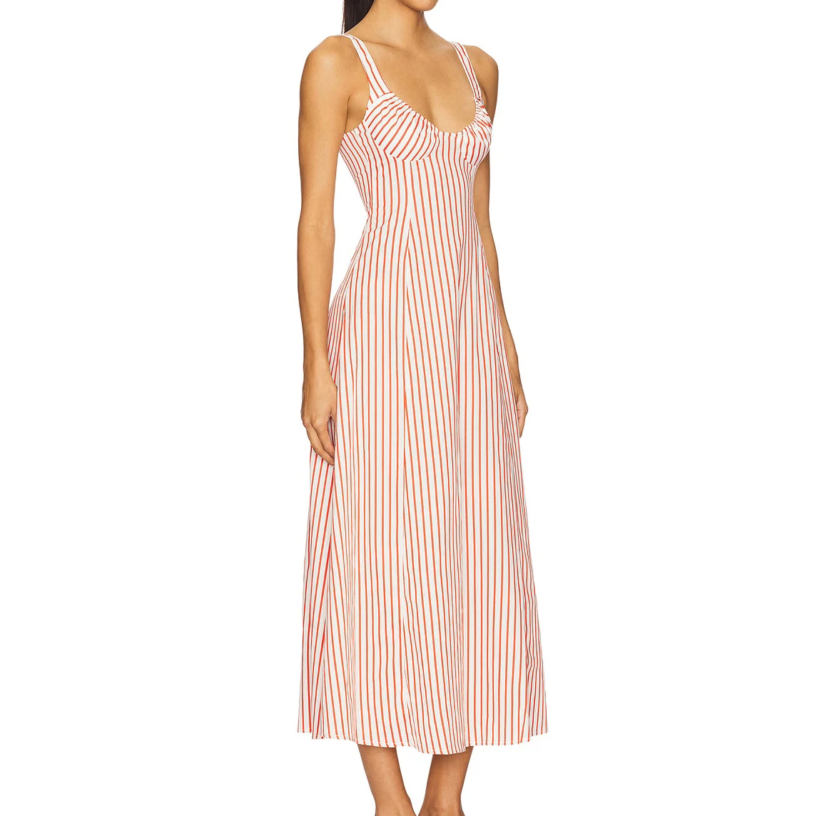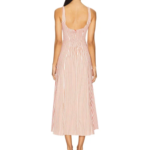 New Fashion Lady Elegant Women Clothing Elastic Neckline Striped Cotton Casual Party Work Out Sleeveless Midi Dress