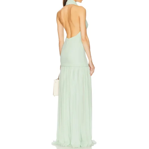 Product Name: New Fashion Luxury Style Green Women Clothing Halter Design Backless Sexy Sleeveless Party Wear Elegant Gown Maxi Dress