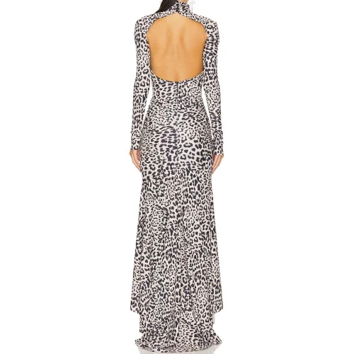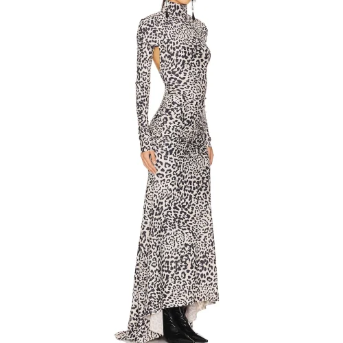 Product Name: New Fashion Women Clothing Lady Elegant Sexy Backless Party Vintage Leopard Jersey Long Sleeve Hi Low Evening Maxi Dress