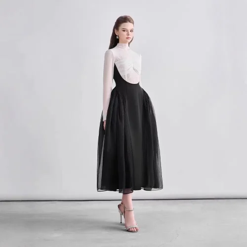 New High End Temperament Elegant Party Dresses Irregular off the Shoulder Slimming Long Dress