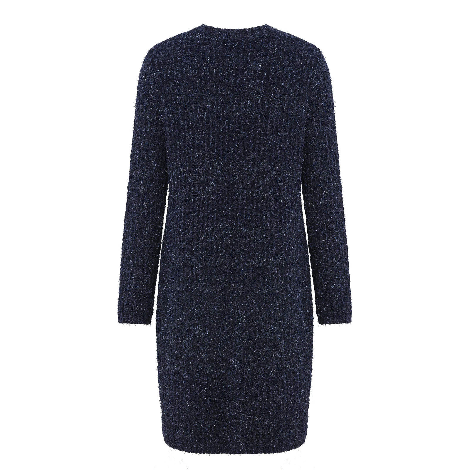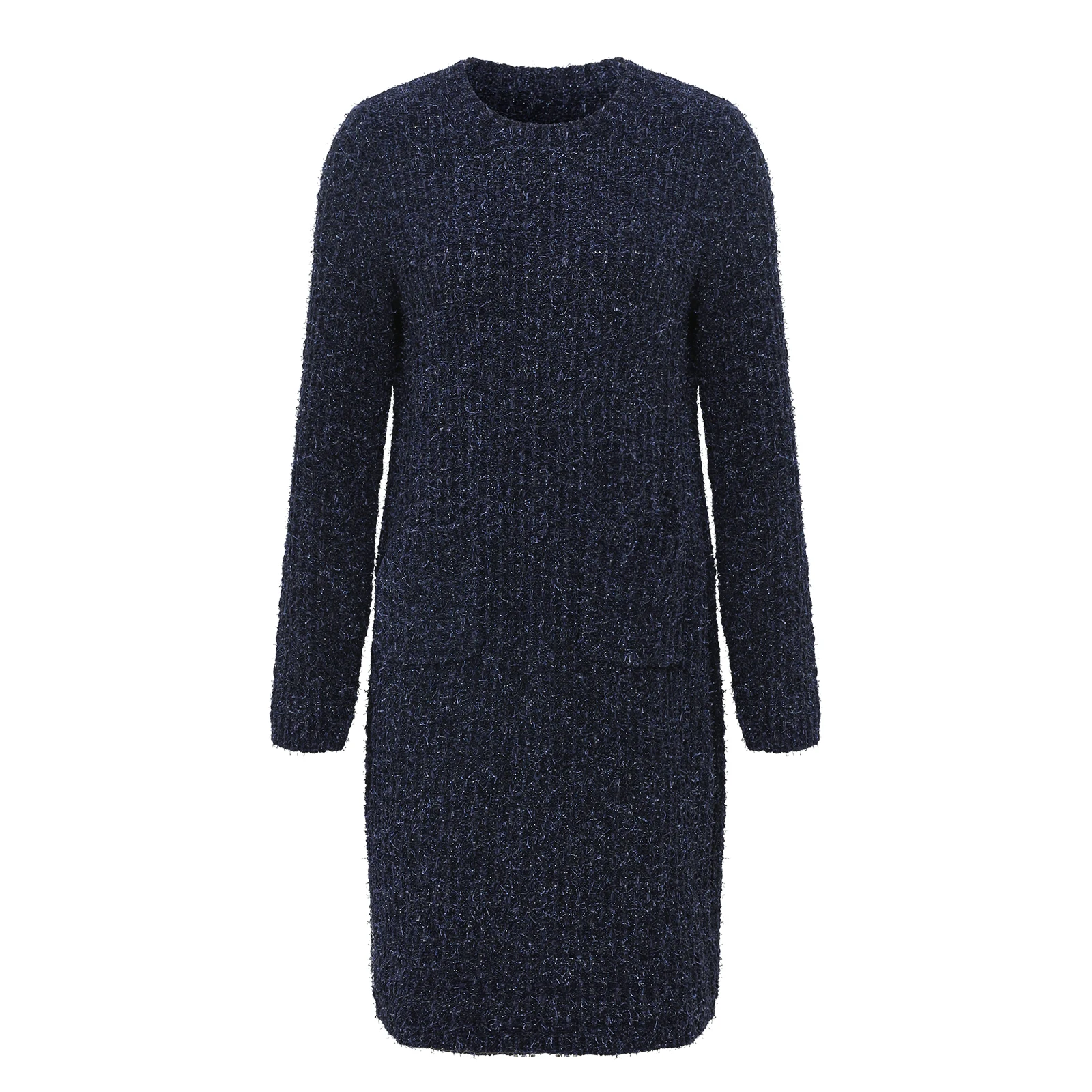 Product Name: New High Quality Crew Neck Plain Long Sleeve Pullover Autumn Elegant Casual Solid Blue Knitted Sweater Dresses
