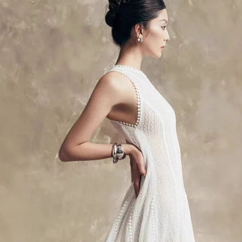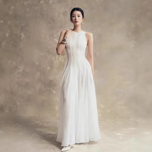 Product Name: New Ladies’ Dress Temperament Waist Cinching Long Skirt Retro Hollow Lace Sleeveless Vest Dress