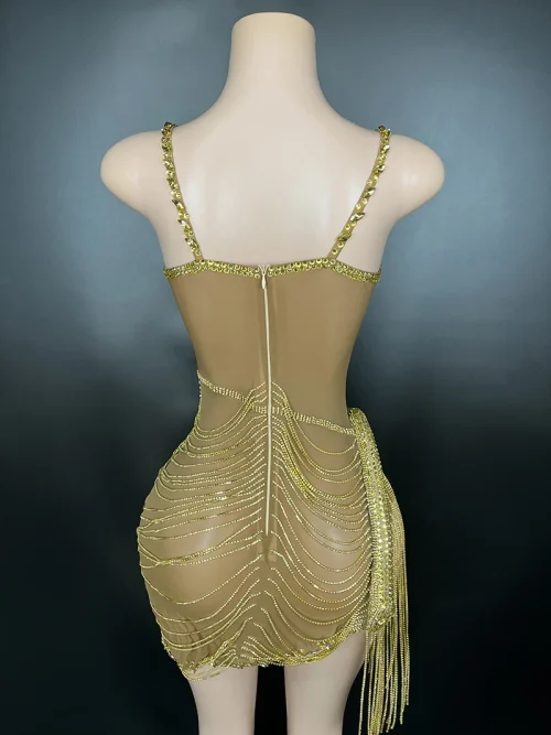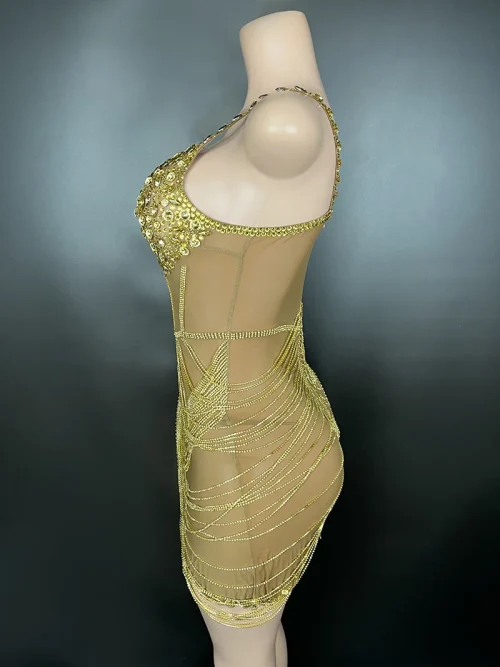 Product Name: New Party Dress Sleeveless Gold Birthday Dress for Women Rhinestone Luxury Women’s Clothing Dress Party Short