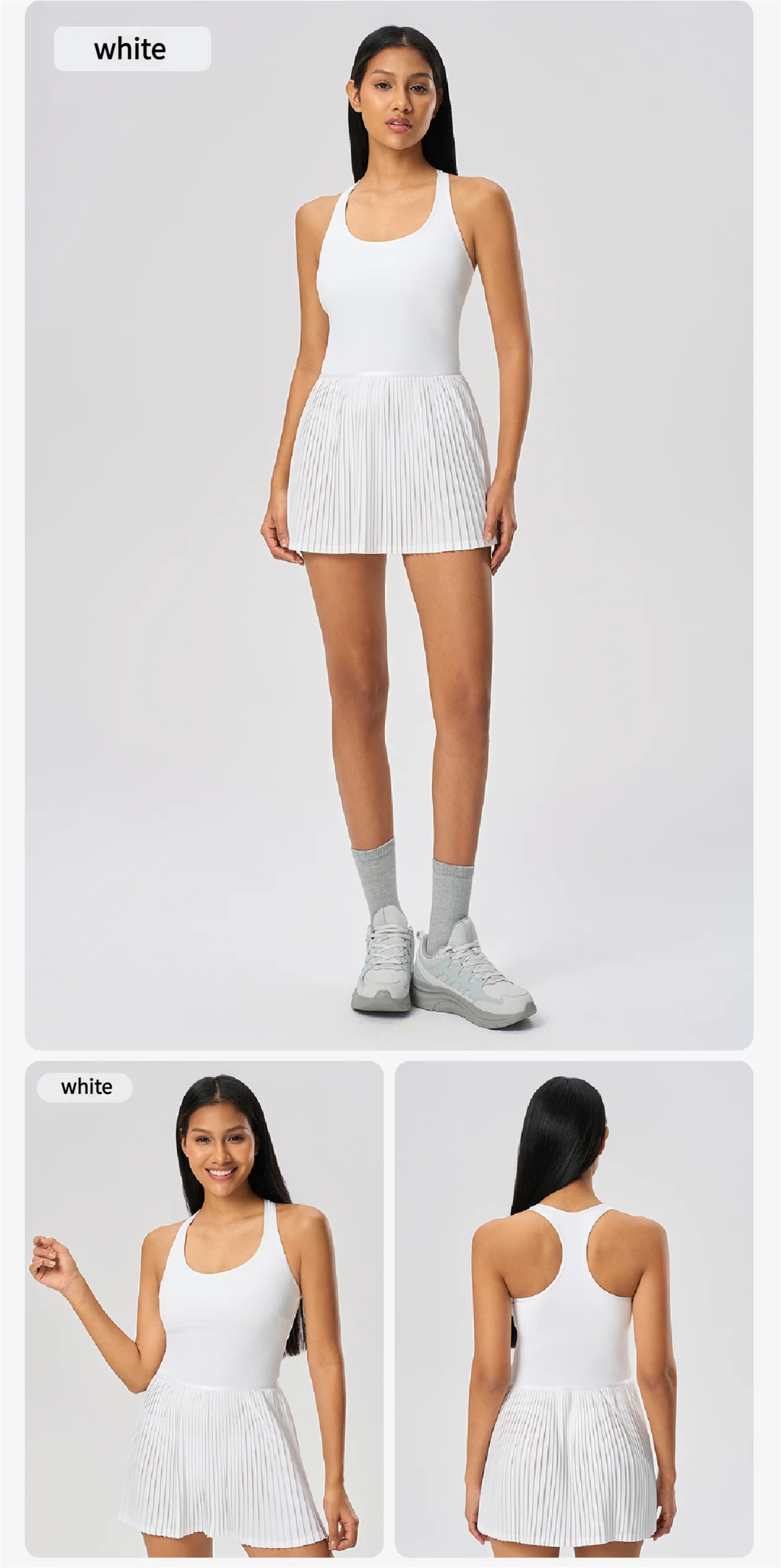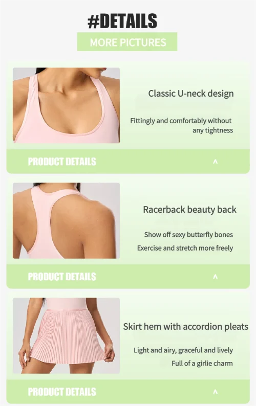 New Sleeveless Racerback Crew Neck Athletic Dresses Women’s Workout Crop Tank Top Yoga Casual Outfits and Pleated Tennis Skirts