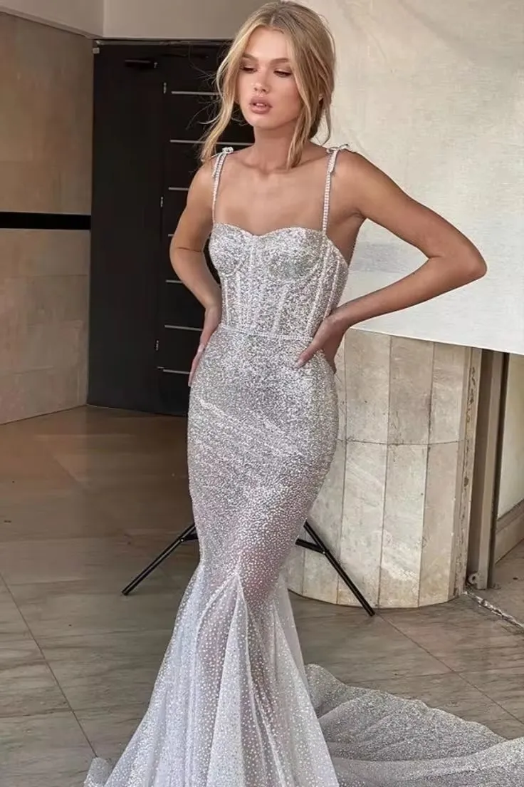Product Name: New Starry Sky Shiny Wedding Dress Dinner Dress Go Out Gauze Suspenders Slim Sexy Mermaid Dress
