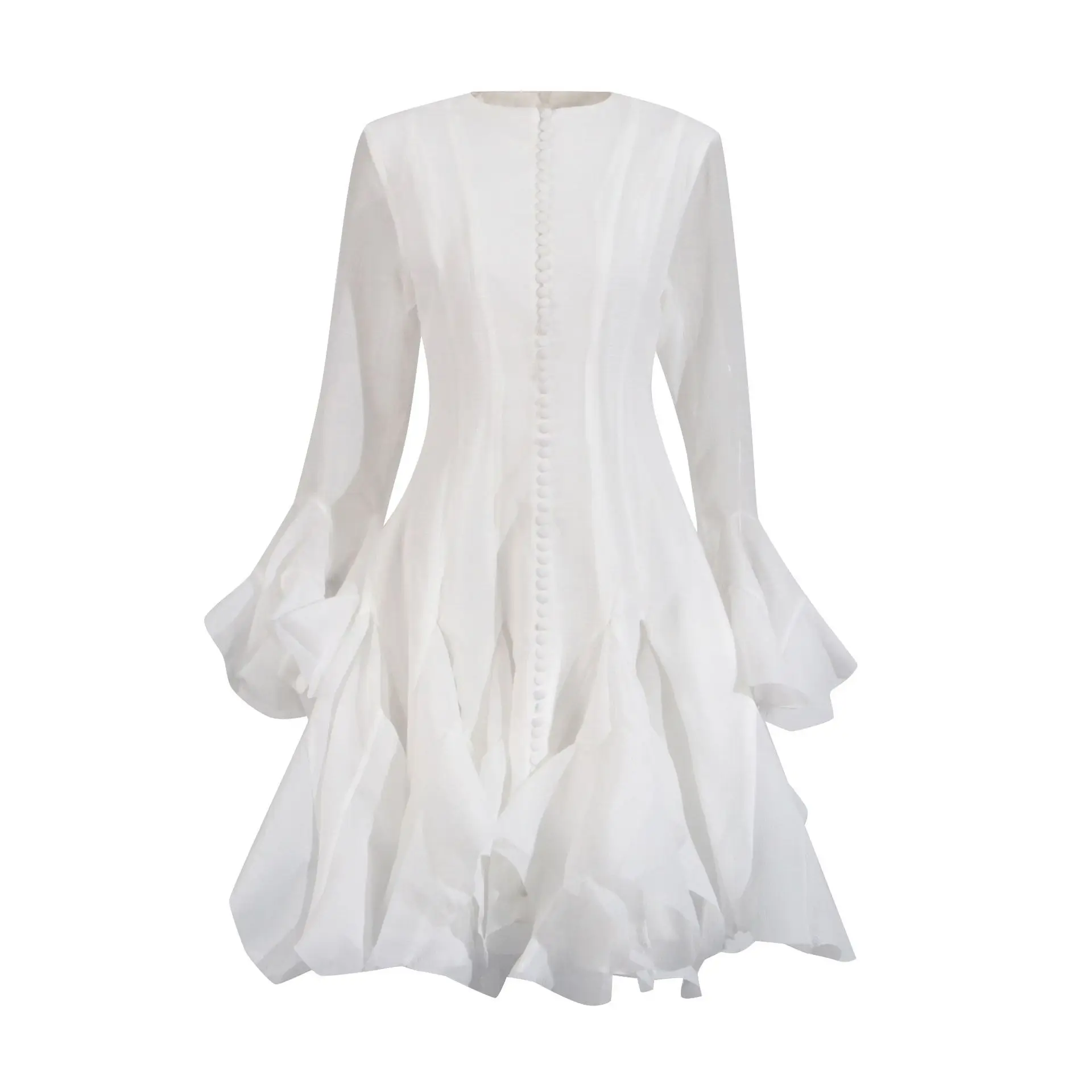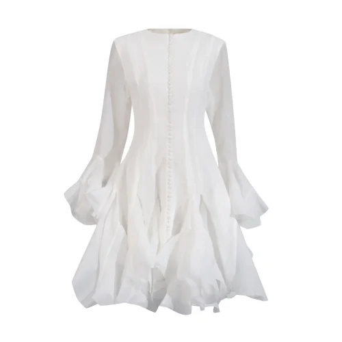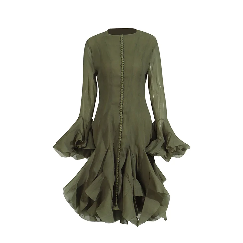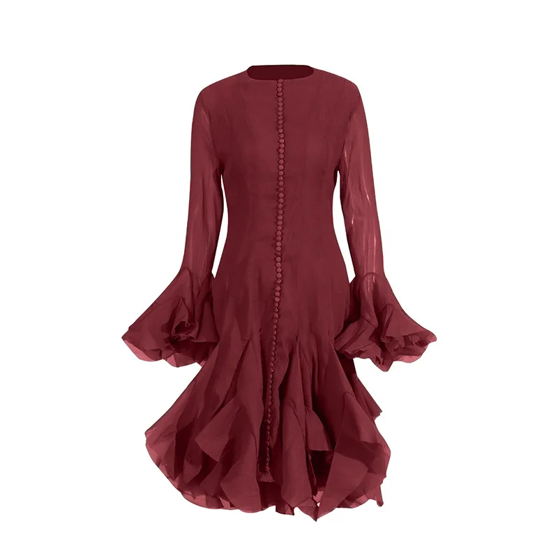 Product Name: New Style Fairy Round Neck Ruffled Trumpet Sleeve Evening Gown Elegant Dresses Women Casual Dress