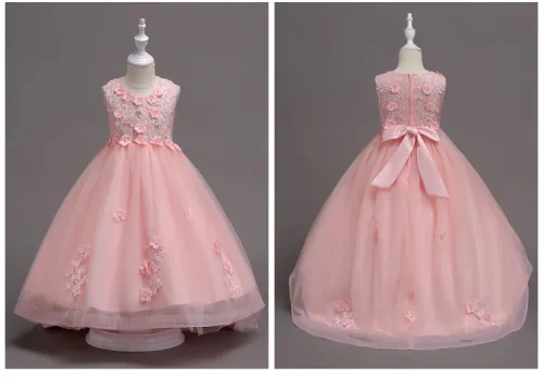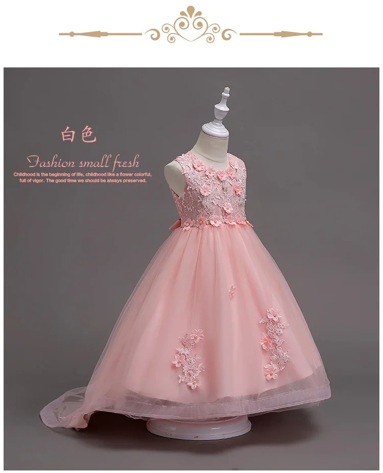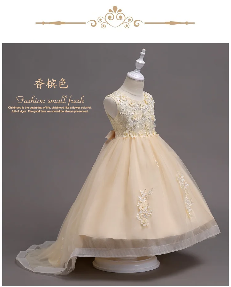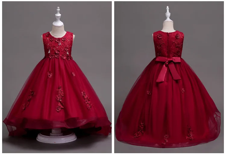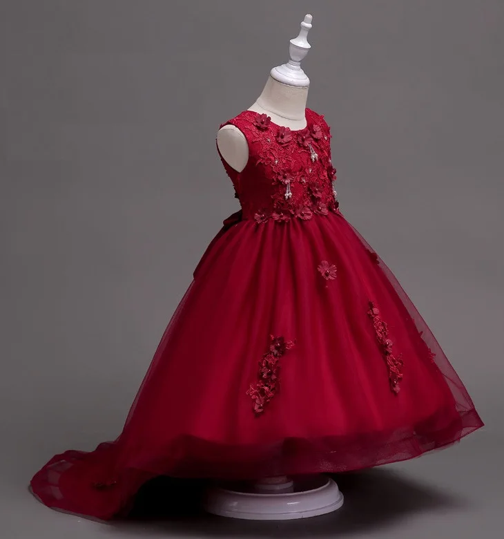 Product Name: New Style Kids Flower Girl Dress Red Wine Color Hand Work Beads Wedding Lace Embroidered Dress