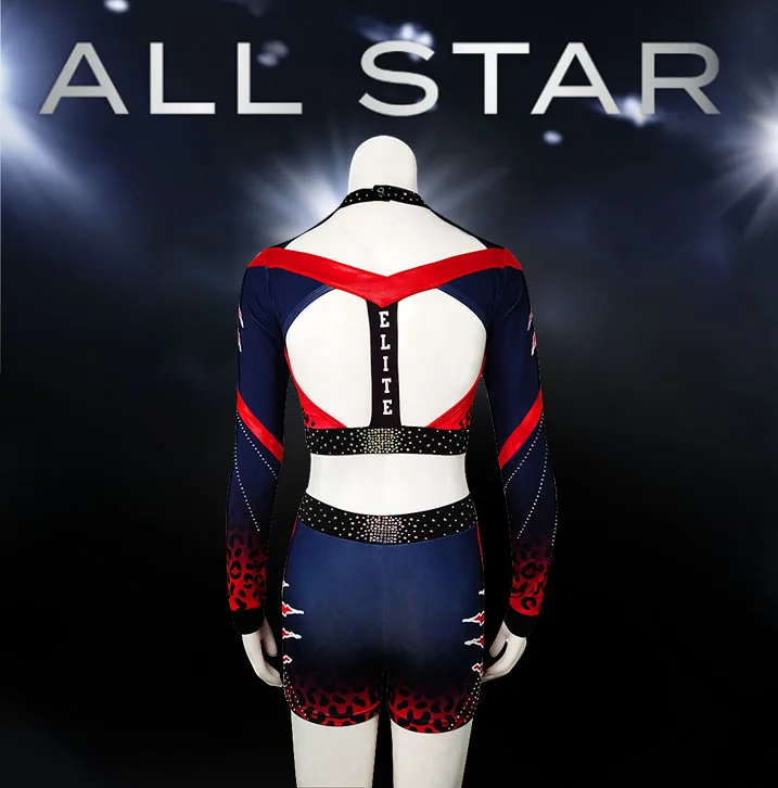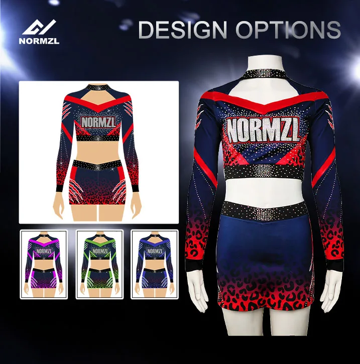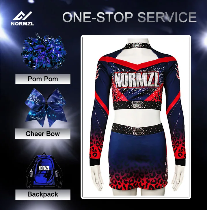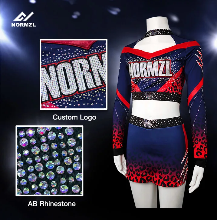 New Style Women Cheerleader Costumes Cheer Dance Team Long Sleeve Sparkle Rhinestones Cheerleading Uniforms