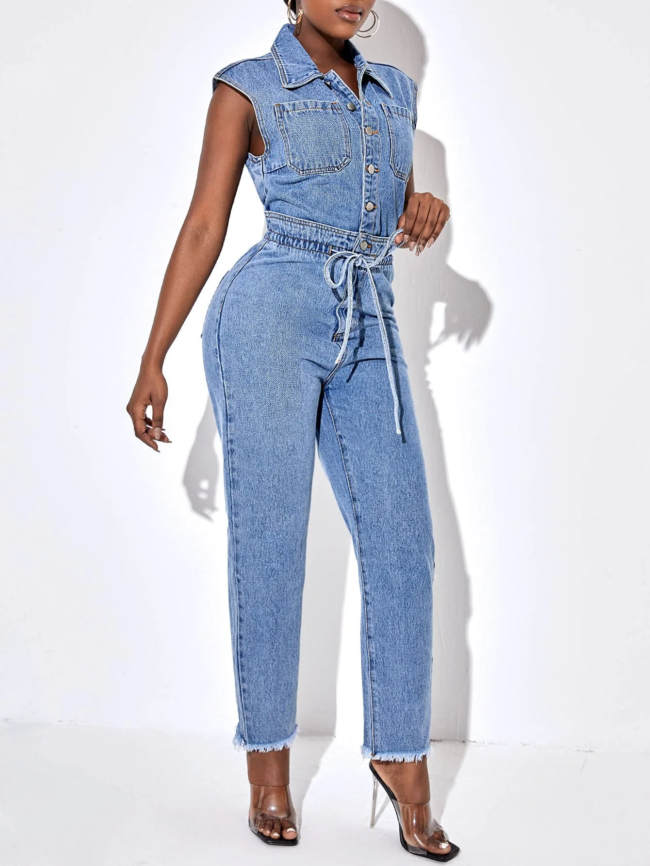 New Stylish Women’s Denim Jumpsuits Pockets Washed Jeans Rompers Plus Size Fashion Denim Jumpsuit