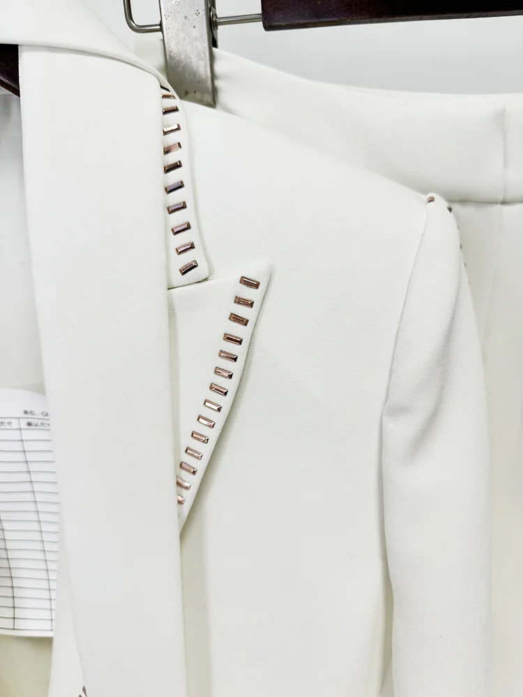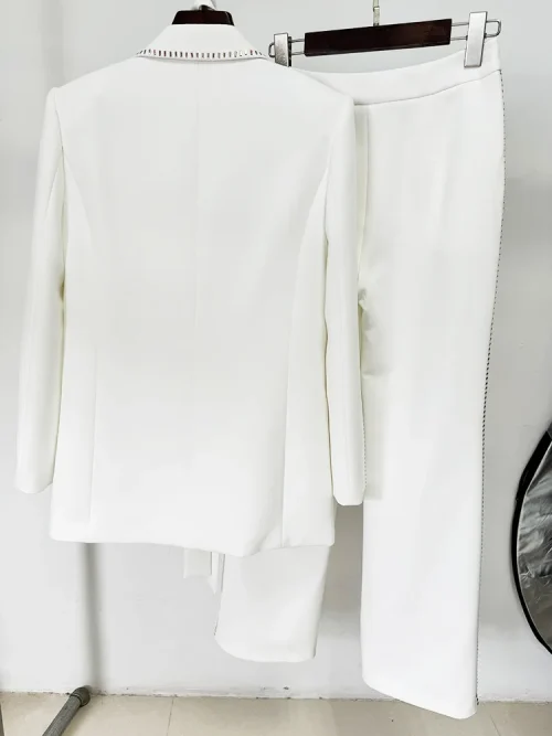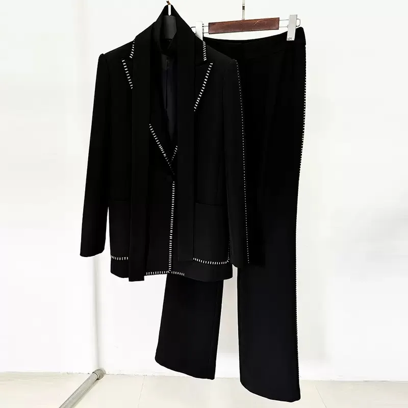 Product Name: Newest 2025 Lady Formal Workwear 2Pcs Solid Drilling Notched Long Sleeve Single Button Blazer Pants Suit With Scarf