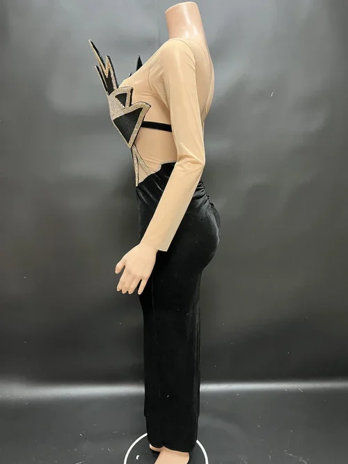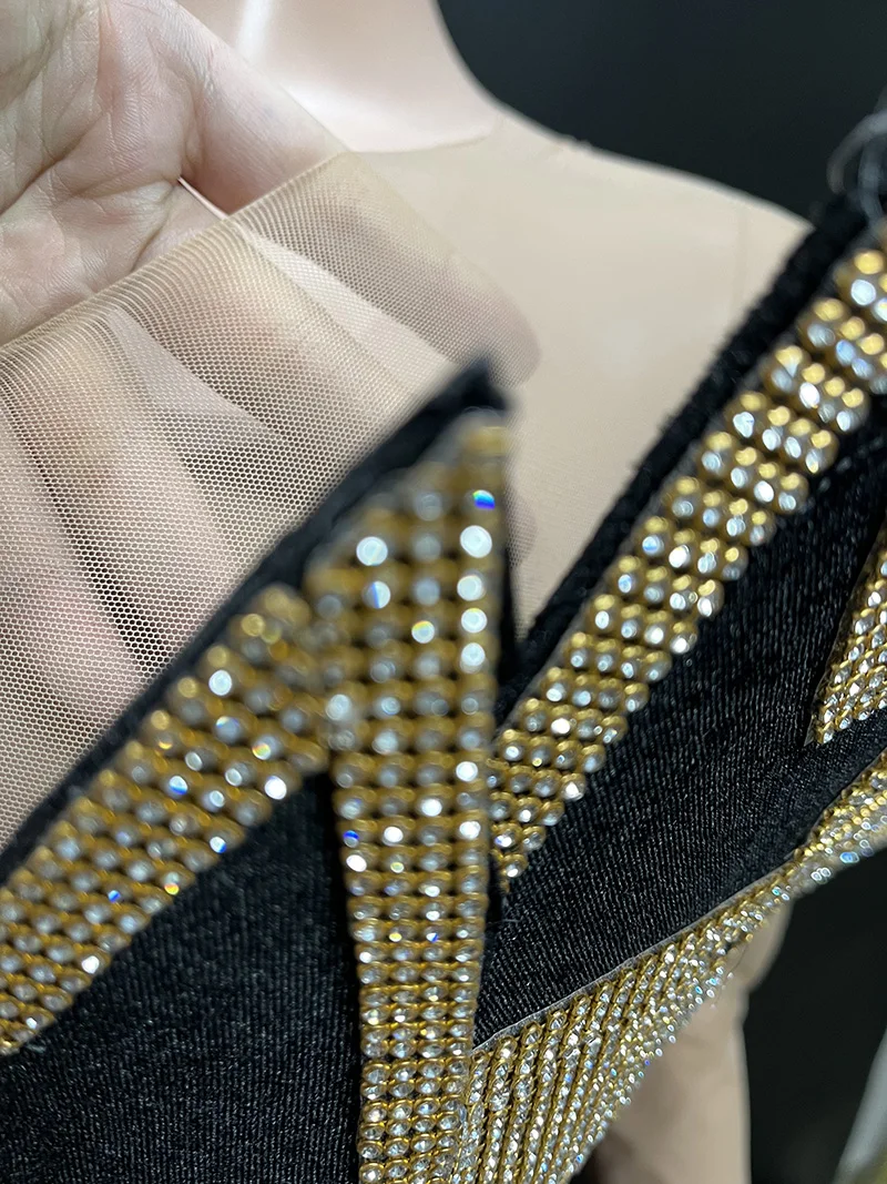NOCANCE 2023 Product Sparkling Golden Diamonds Elegant Black Prom Dresses Unique Maxi Plus Size Women Dresses Party