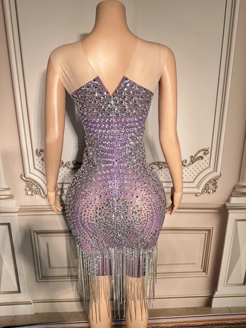 Product Name: Nocance Novance Bulk Women’S Clothes Diamond Tassel Shinny Ladies Purple Dress Short Formal Dress Elegant for Women