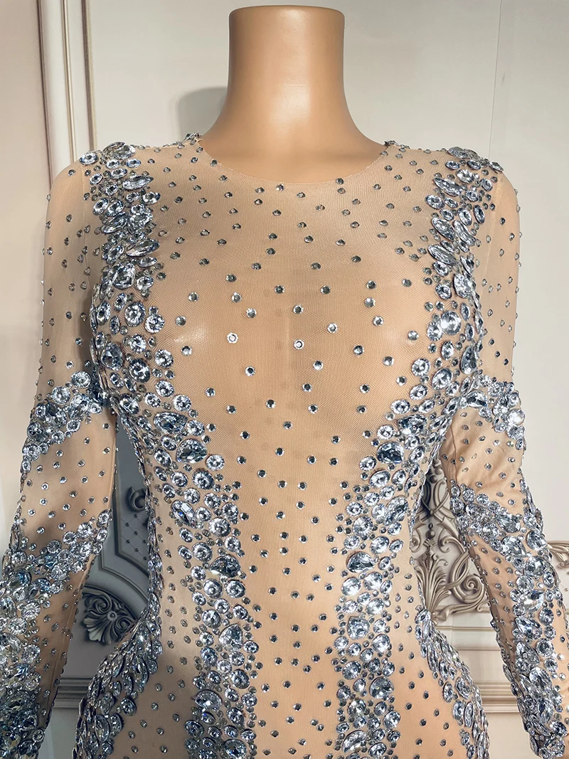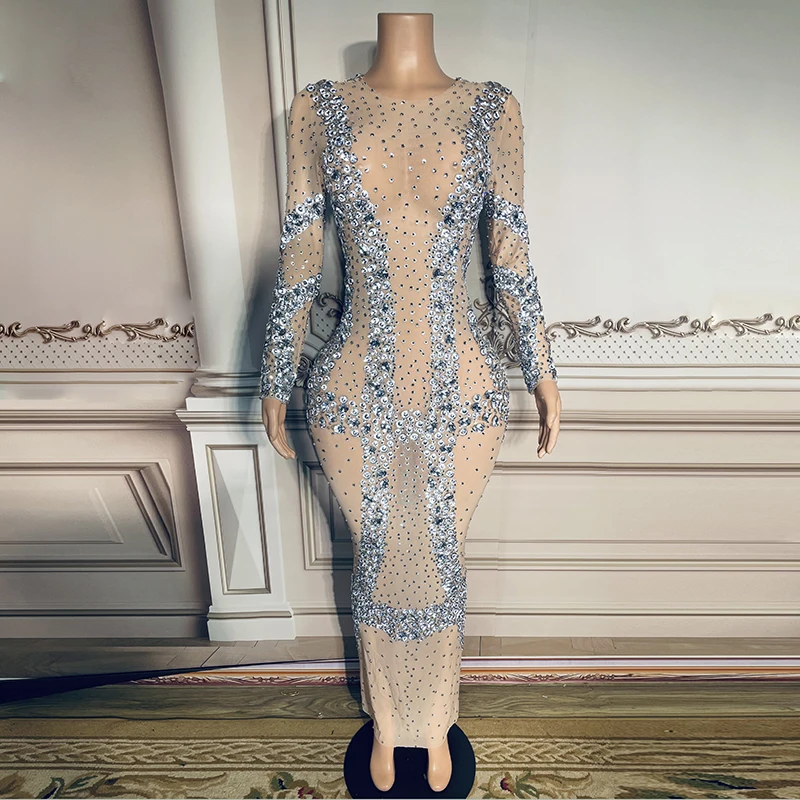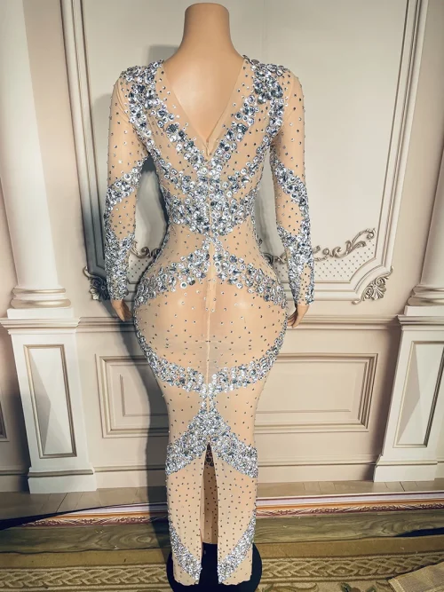 Product Name: NOCANCE Women Spring 2023 Nude Color Dazzling Diamonds Sexy See Through Dresses Club Dress for Ball Roon Red Carpet for Evening