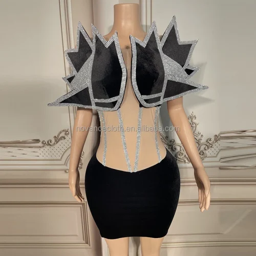 Product Name: Nocance Y2454 2023 New Product Velvet Shiny Diamond Unique Design Short Prom Dress Diamond Club Party Crop Robe Femme Pakistan