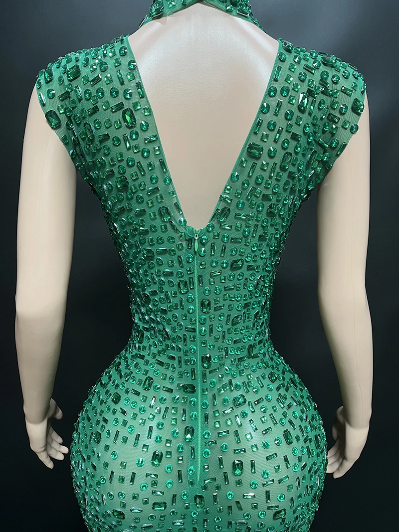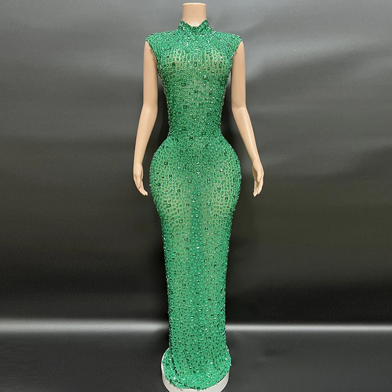 Product Name: NOVANCE Dropshipping Agent Sleeveless High Neck Shiny Green Sequin Dress Sexy See Through Long Dresses Women for Evening Party