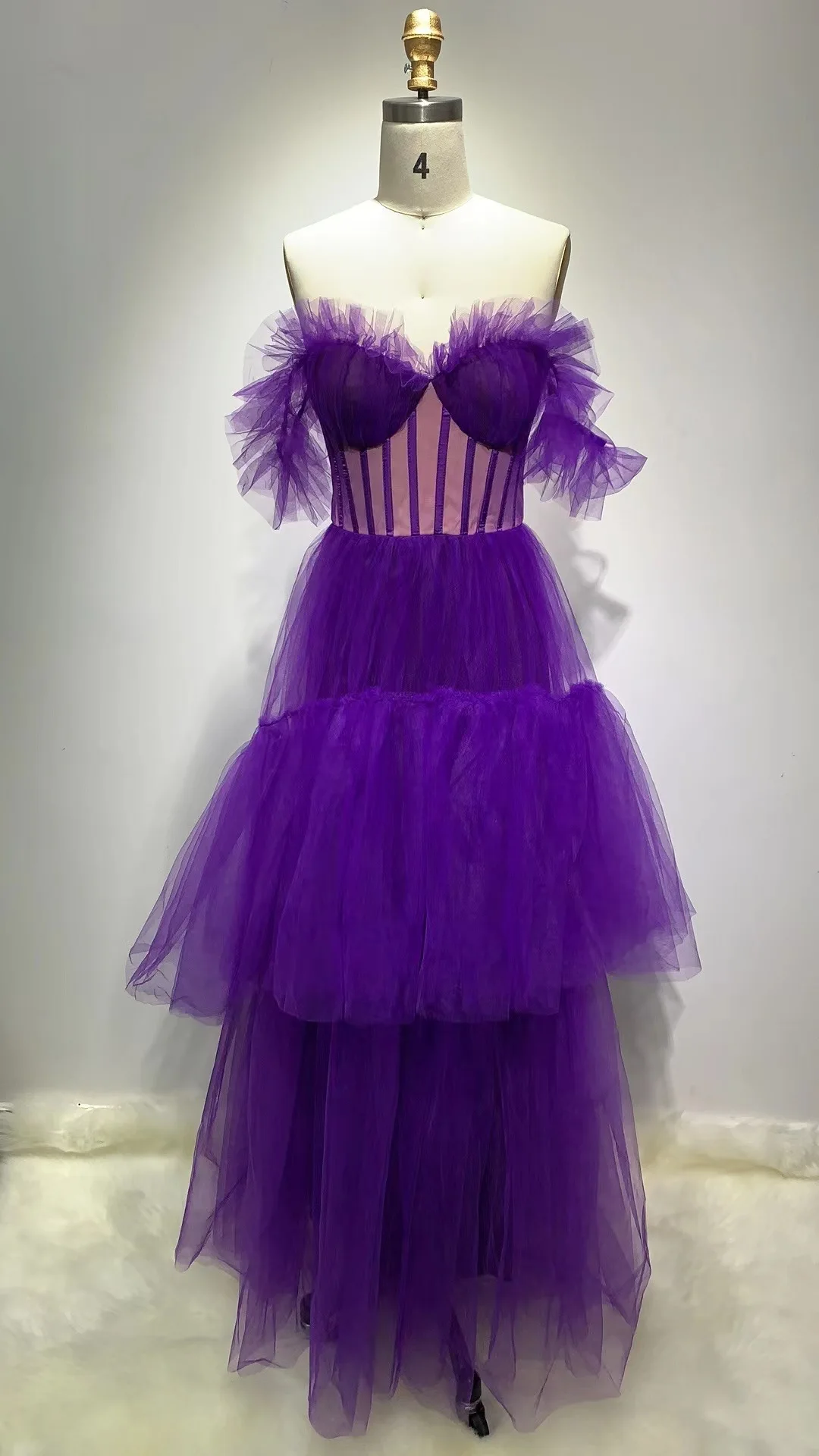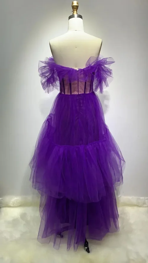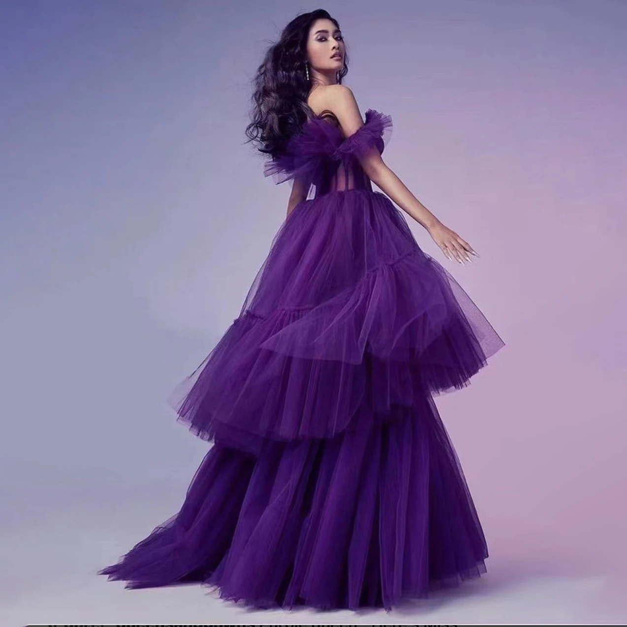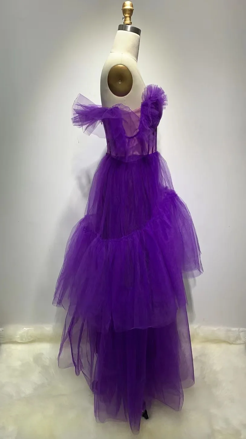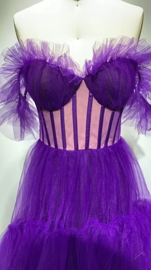 Novance F2977 Off the Shoulder Purple Puff Wedding Gowns Sexy Bridal Luxurious Dress Vintage Clothing Mesh Peacock Evening Dress