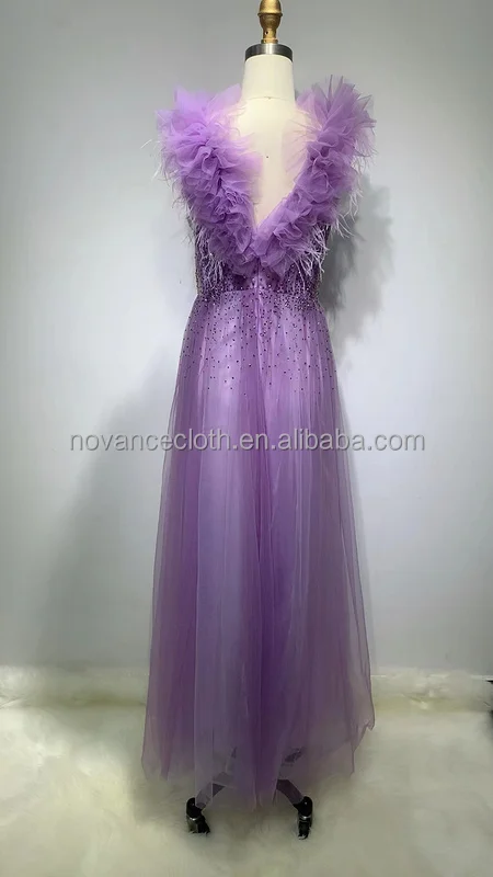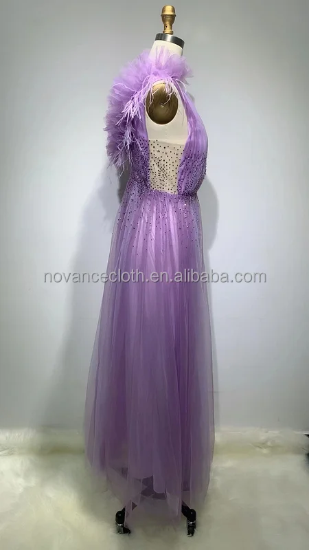 Novance F3043 Luxury Woman Fashion 2022 Dresses Purple Sequin Dress Wrap Bodycon Mesh Split Feather Party Evening Dress for Girl