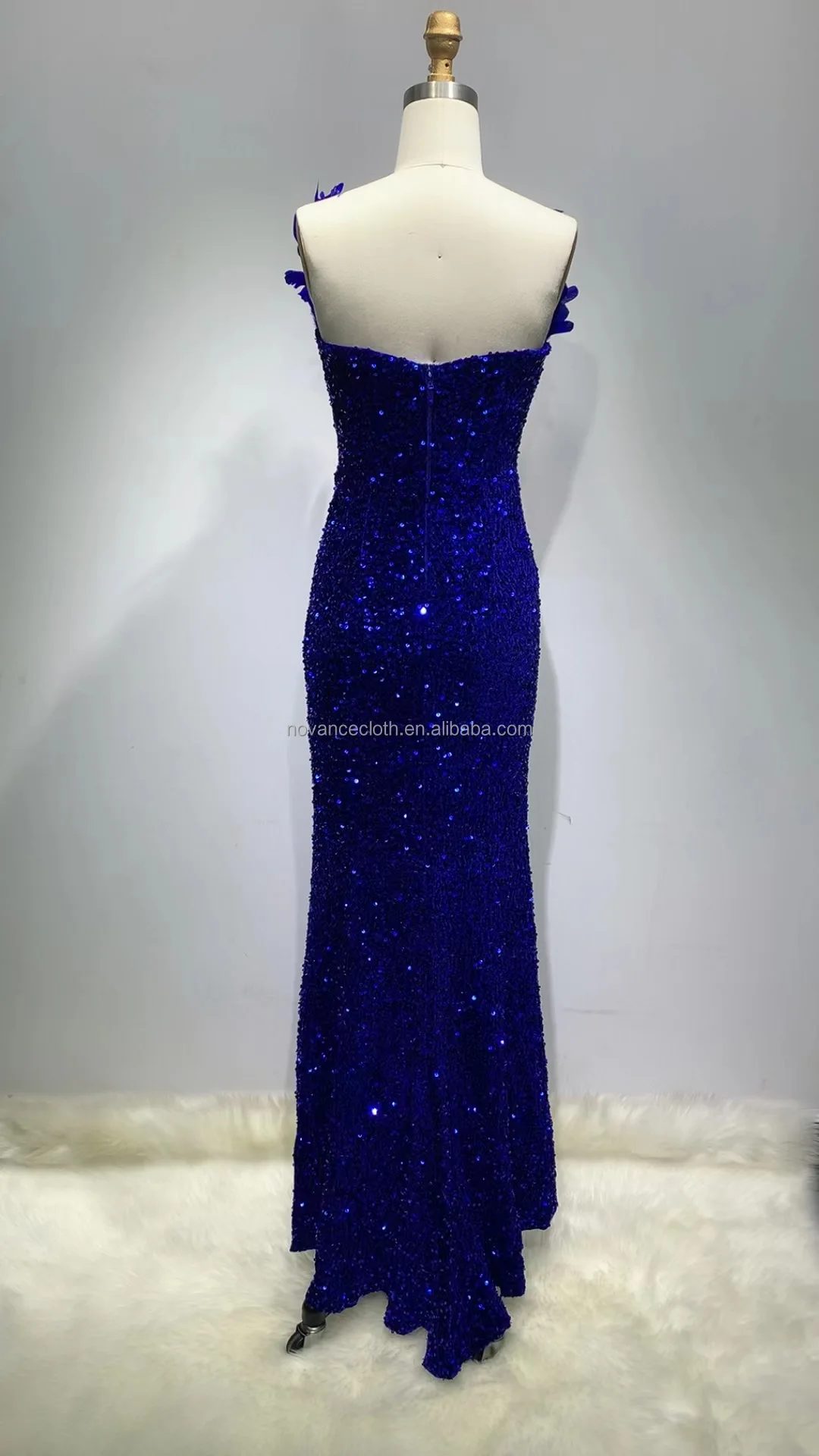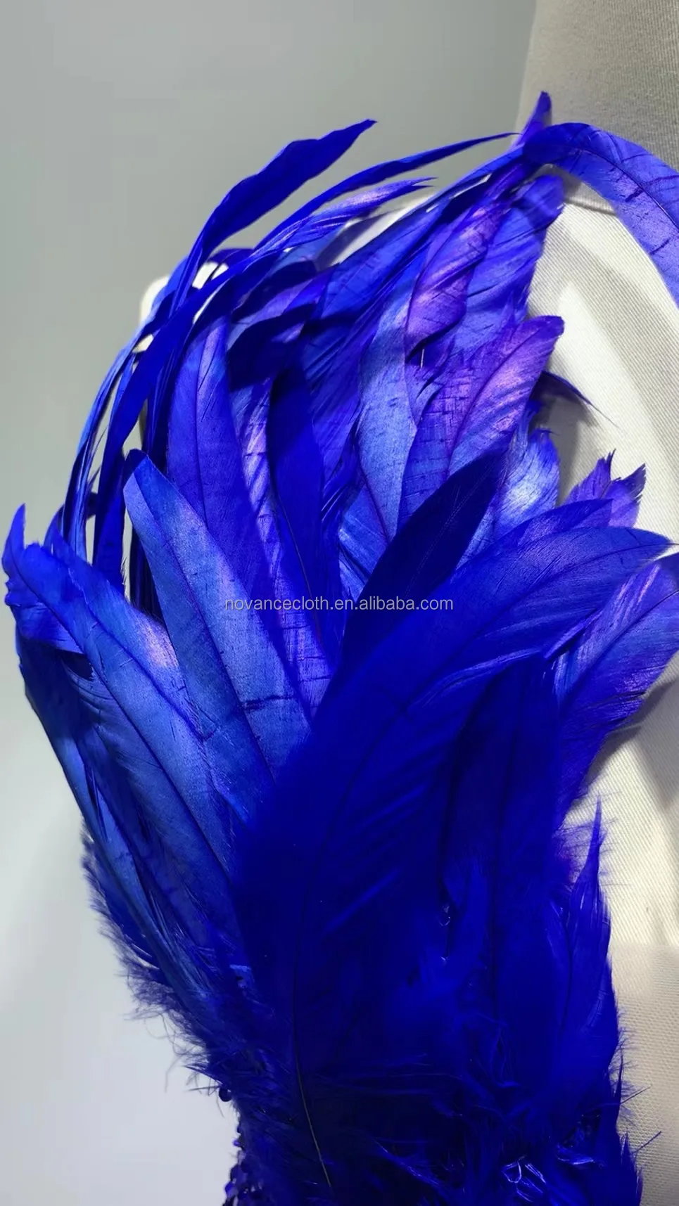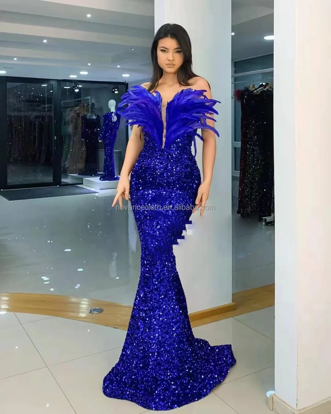 Product Name: Novance F3080 Garments Stocks Elegant Long Dresses 2022 Feather Bluey Costume Stitching Sexy V-Neck Banquet Party Club Dress