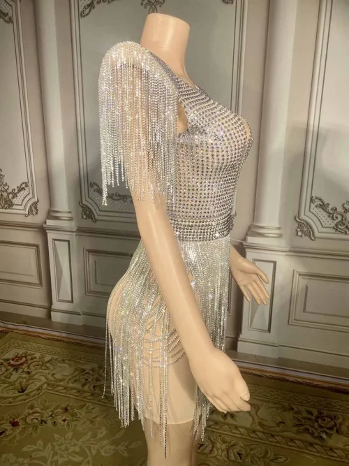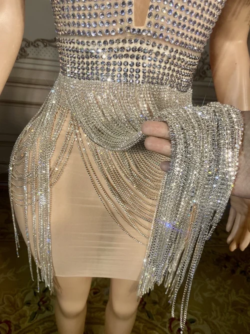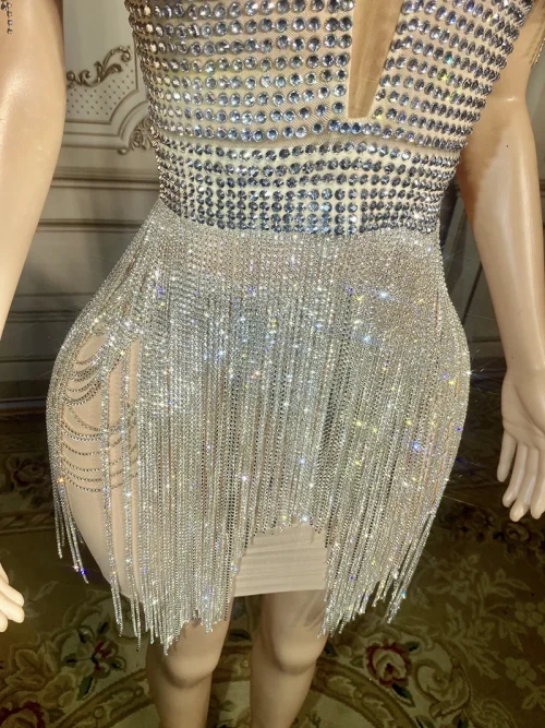 Product Name: NOVANCE New Ladies Clothes Sexy V Neck Glittering Diamonds Fringes Silver Dress See Through Club Dress for Prom Party Nughtclub