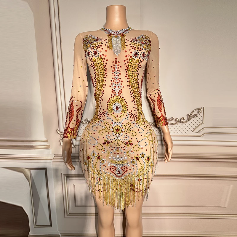 NOVANCE Spring 2023 Women s Clothing Sparkling Golden Color Crystals Diamond Dress Evening Dresses With Bling Tassels for Prom