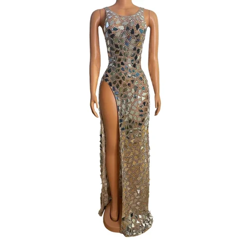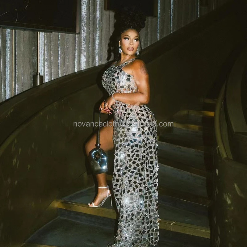 Product Name: Novance Summer Sun Dress 2023 Mirror High Slit Ladies Sexy Party Dress Applique Rhinestone Backless Maxi Dress Vestidos De Club