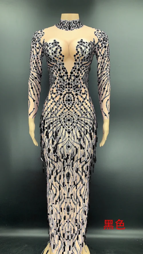 Product Name: NOVANCE Vestidos Elegantes Appliques Crystal Dresses Women 2021 Beaded Lace 3d Floral Sequined Long Sleeve Prom Dresses