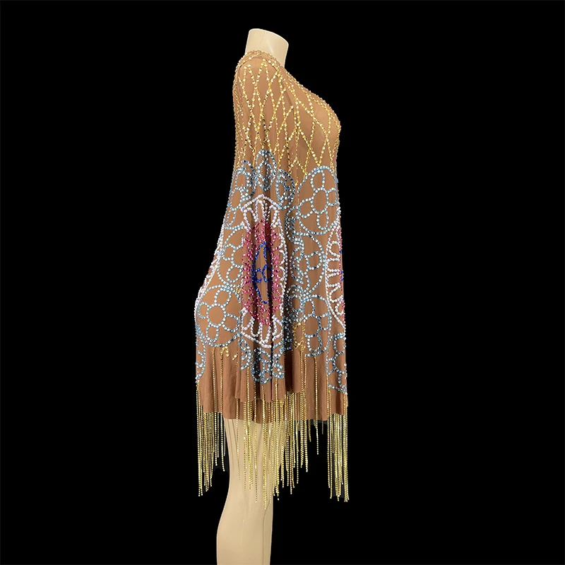 NOVANCE Y2252-B Summer Dress 2022 Colored Diamond Pattern Tassels Crystal Comfortable Casual Dresses Rhinestone Skirt Holiday